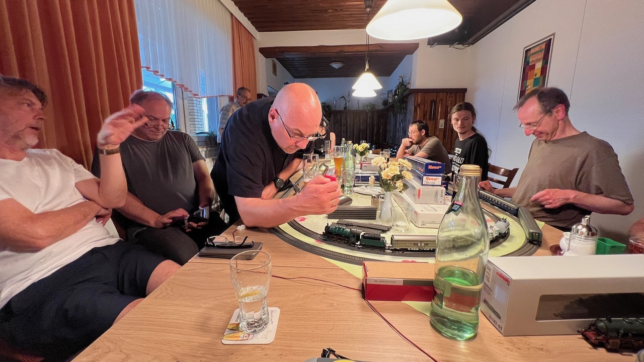 Trotz der sommerlichen Temperaturen haben sich 15 Modellbahn Verrücke in unserem Stammlokal in Groß Förste bei Hannover eingefunden.