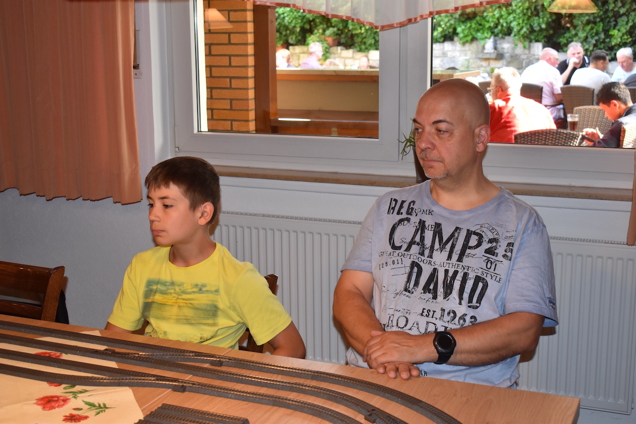 Trotz der hohen Temperaturen haben sich wieder einige Modellbahner zu unserem Stammtisch eingefunden, um ihre Modelle mal wieder etwas Auslauf zu geben.