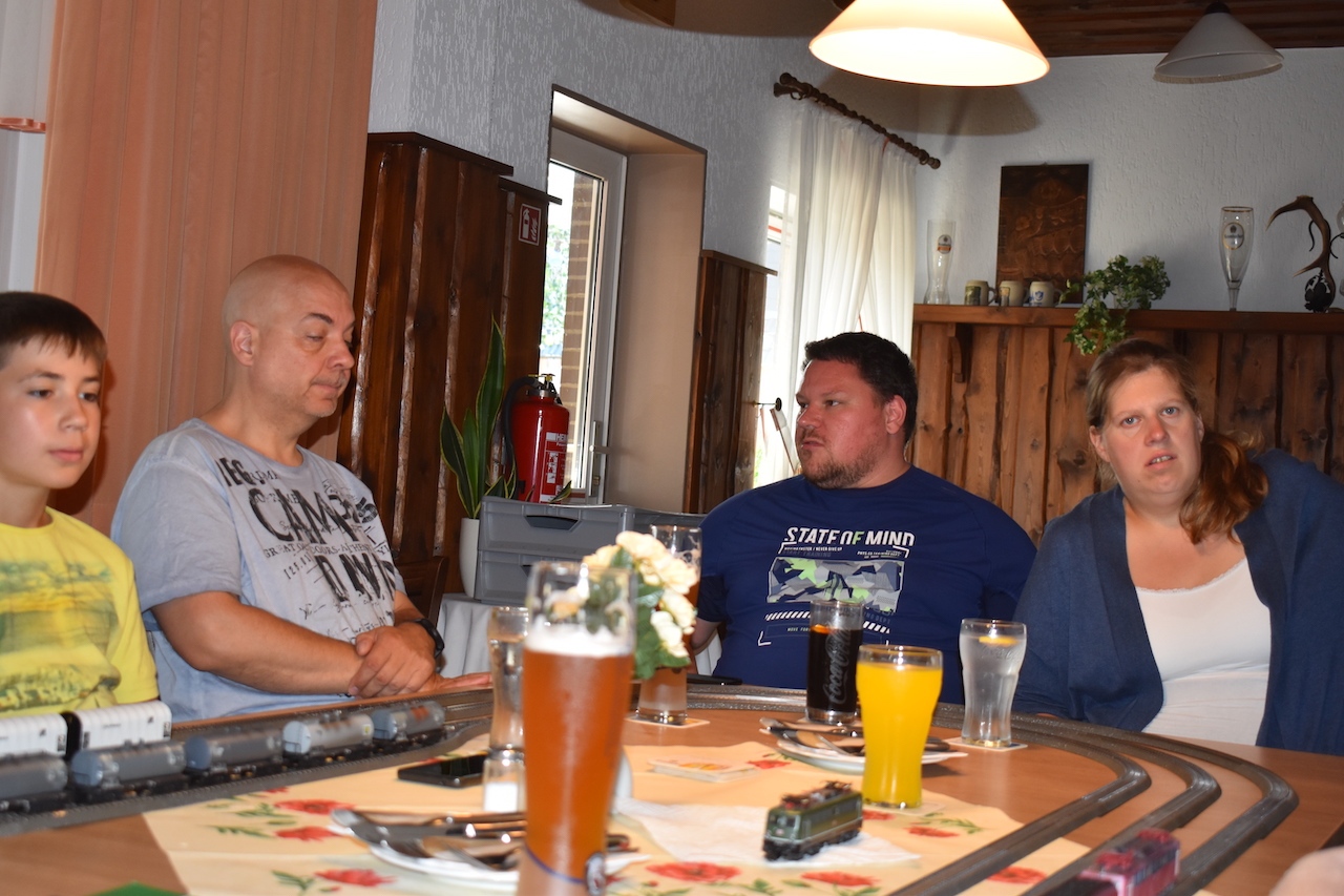 Trotz der hohen Temperaturen haben sich wieder einige Modellbahner zu unserem Stammtisch eingefunden, um ihre Modelle mal wieder etwas Auslauf zu geben.