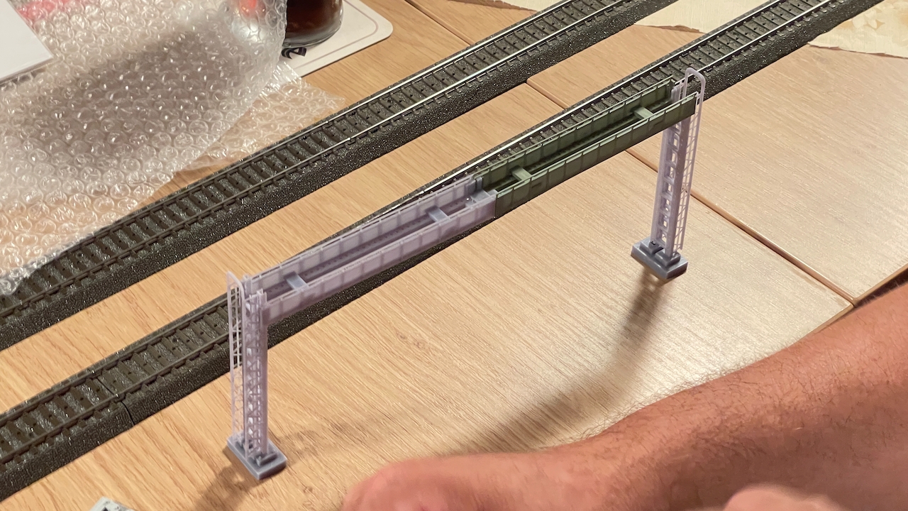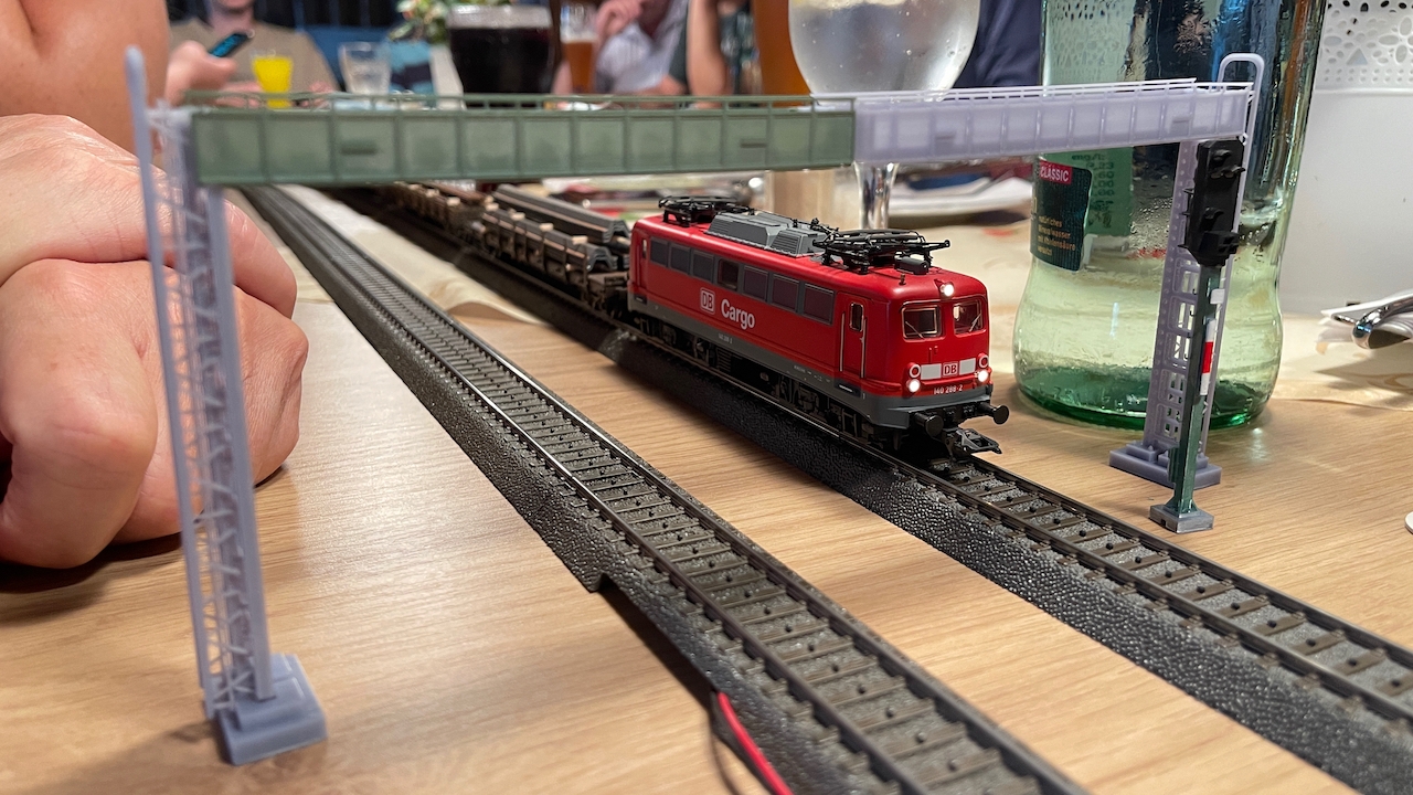 Die Signalbrücke ist ein Stecksystem. Wir haben sie bei Matthias Schmidt aus Taufkirchen gekauft. Diese Brücke ist über einen 3D-Drucker erstellt worden. Die grüne Farbgebung ist in Eigenleistung erstellt worden.