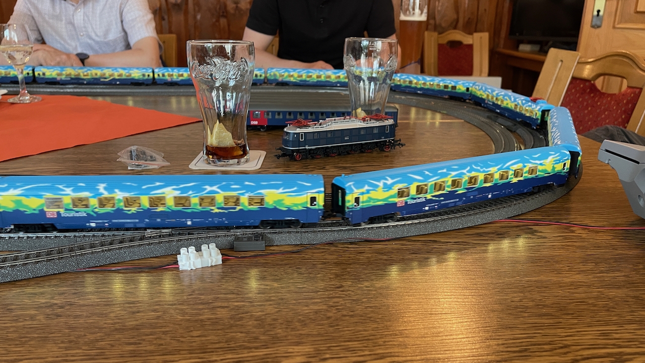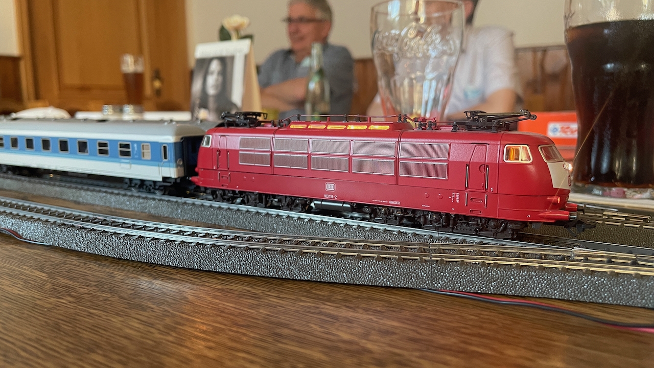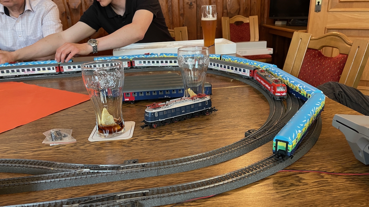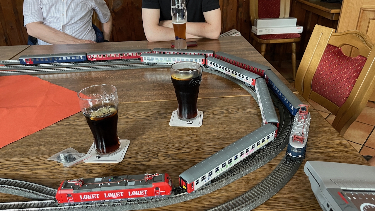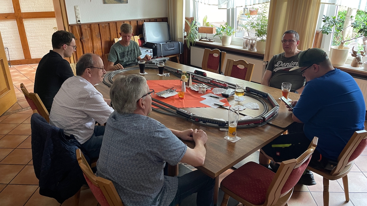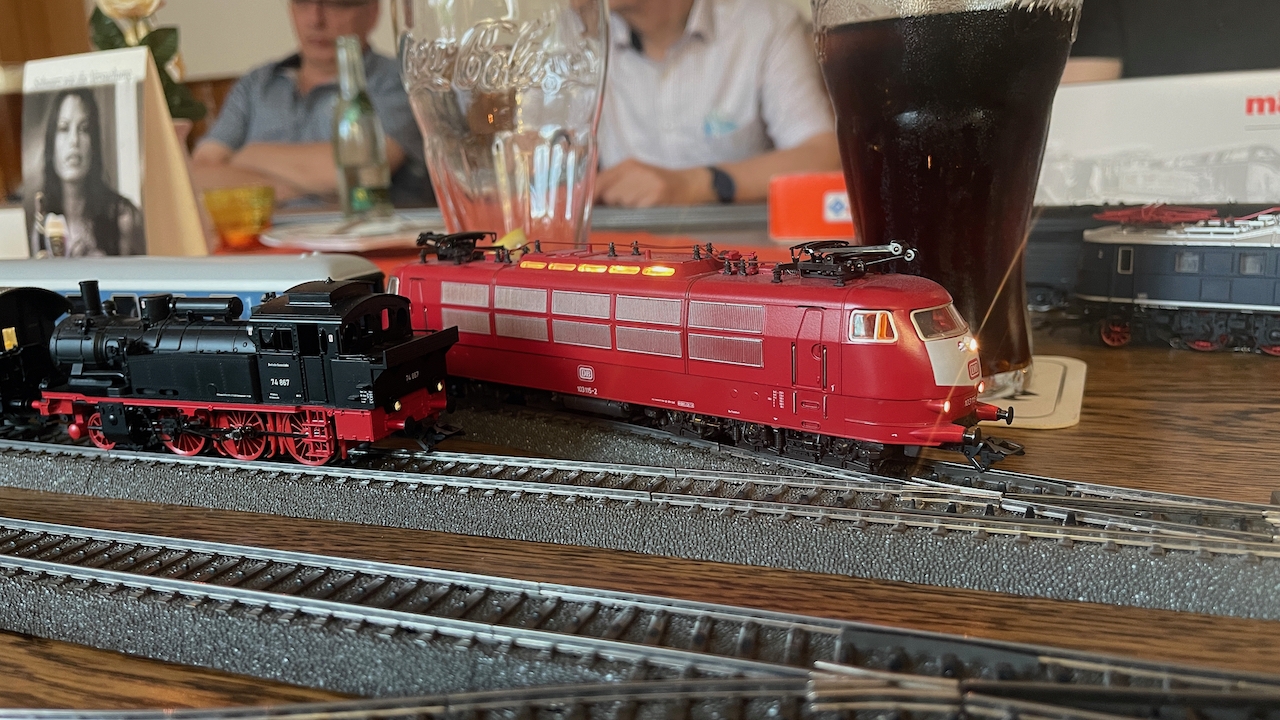 Nach ausgiebigen Gesprächen haben wir es in der kleinen Runde doch nicht nehmen lassen, die mitgebrachten Loks auch ein wenig Auslauf zu gönnen.