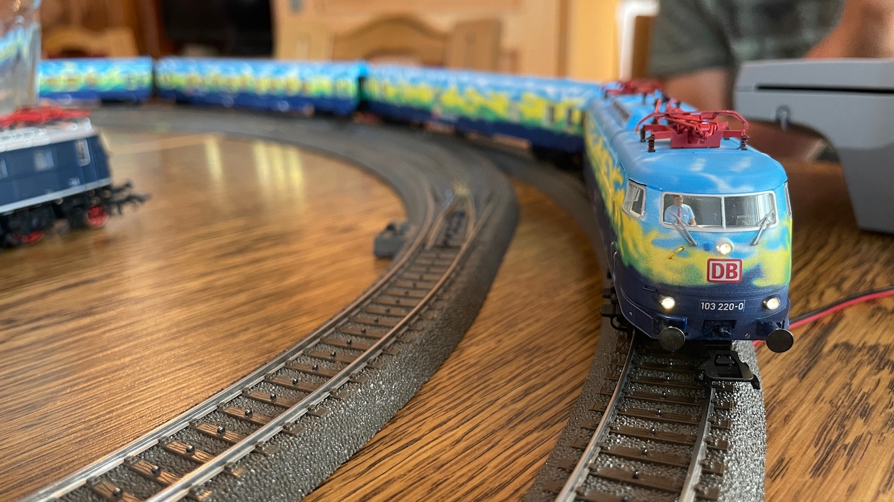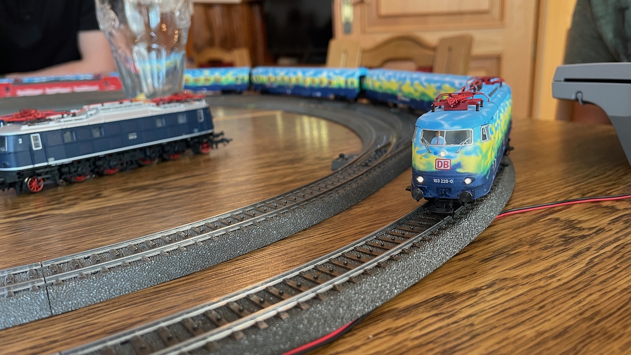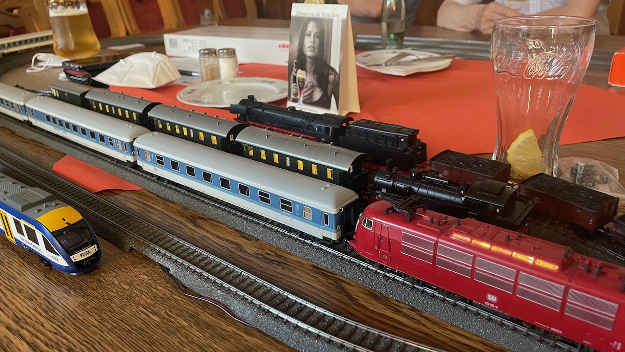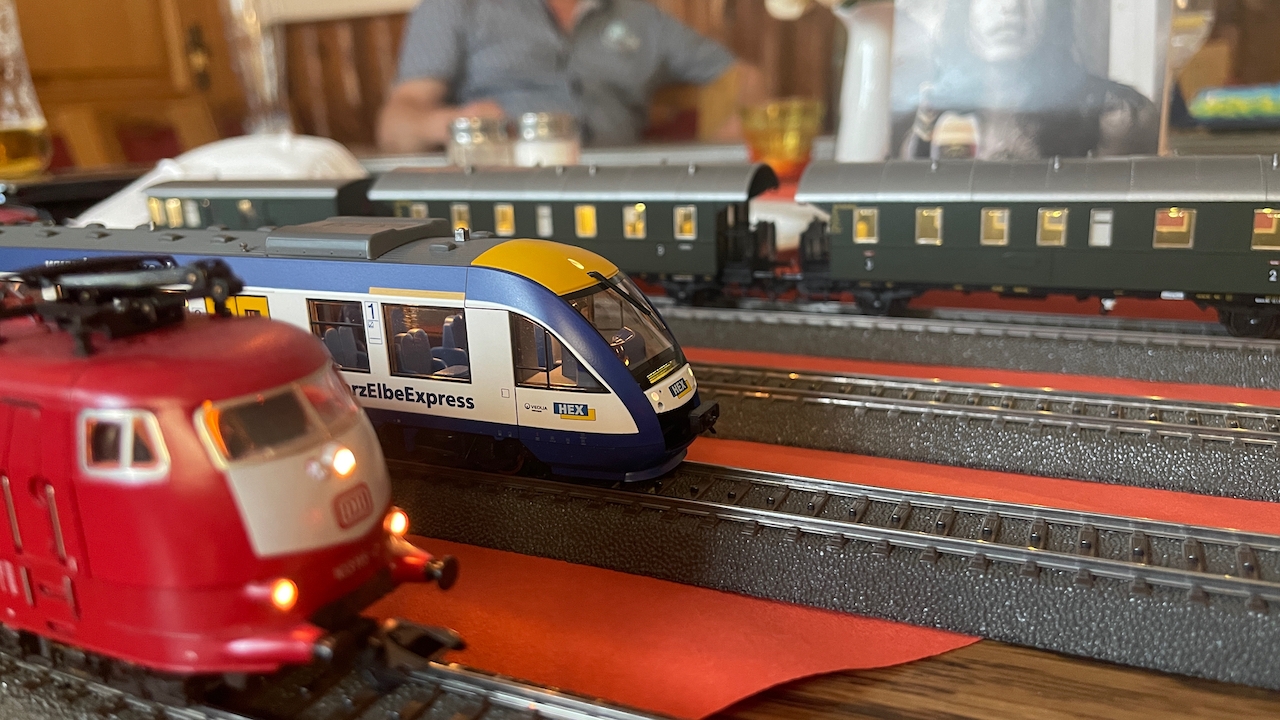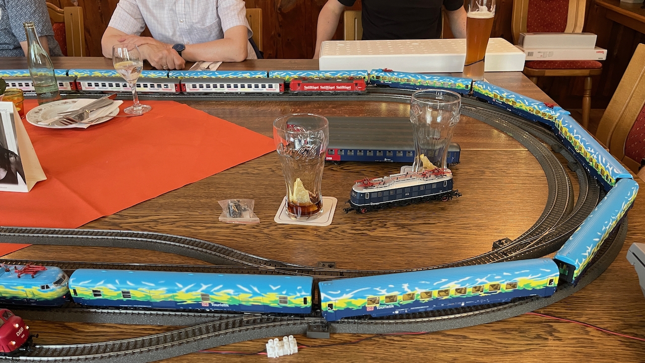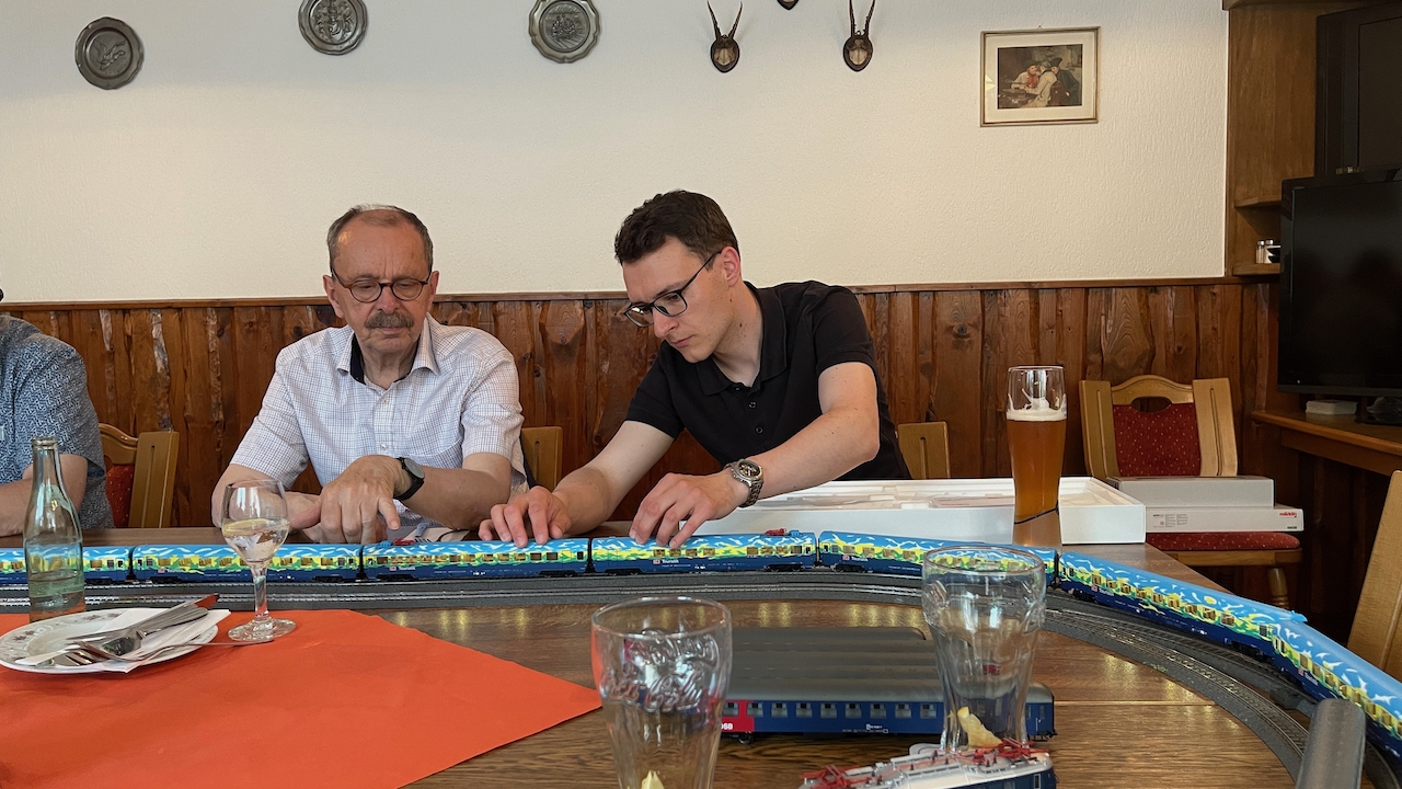Nach ausgiebigen Gesprächen haben wir es in der kleinen Runde doch nicht nehmen lassen, die mitgebrachten Loks auch ein wenig Auslauf zu gönnen.