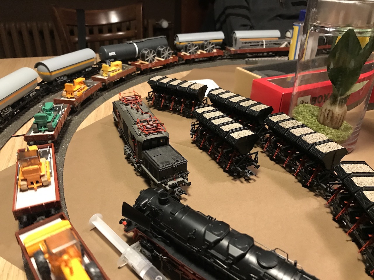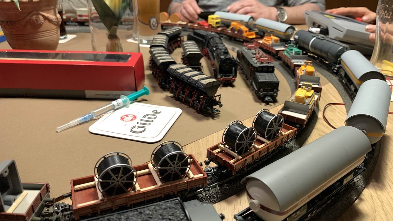 Auf unserer Tischanlage stauten sind eine Menge an Güterwagen, so dass unser Fahrdienstleiter einiges zu tun hatte, um all die Züge in Bewegung zu bringen.
