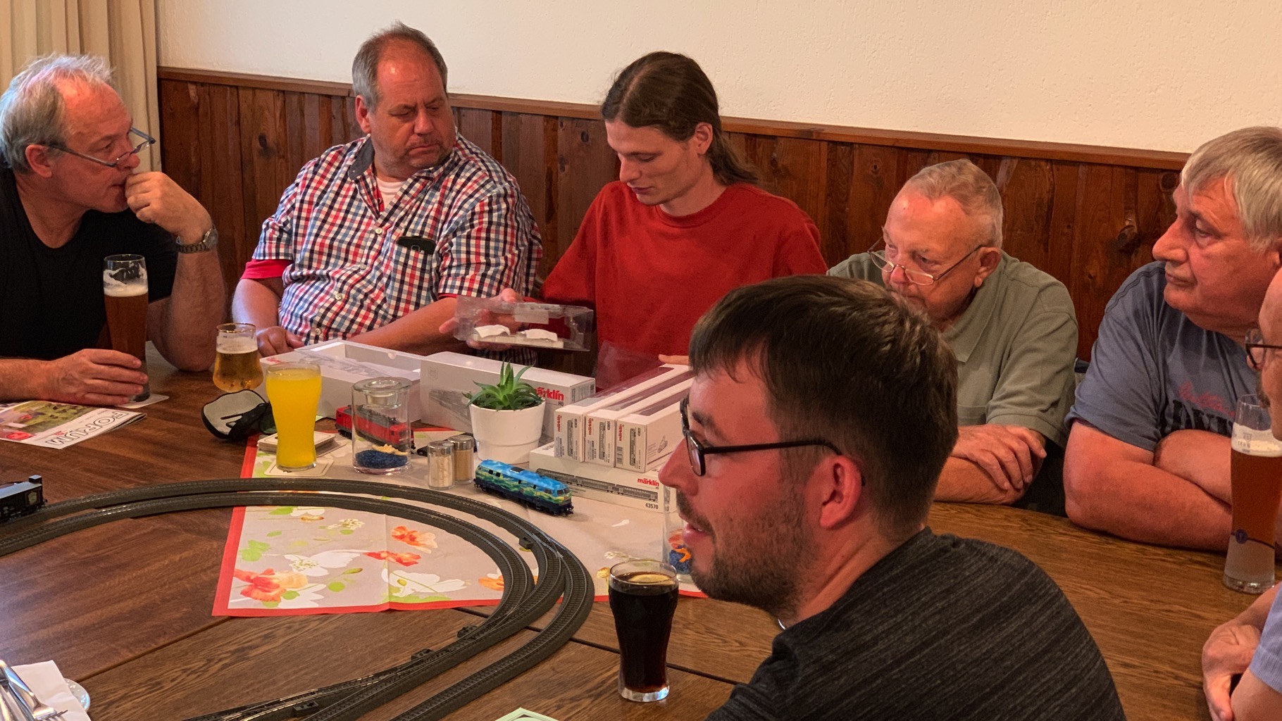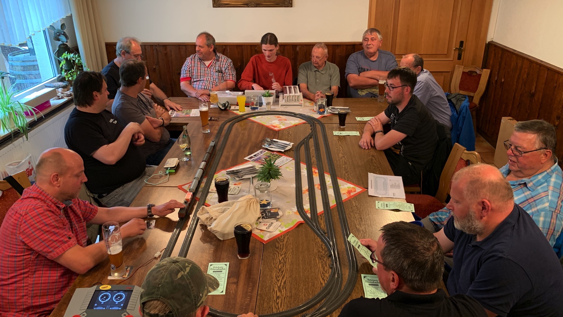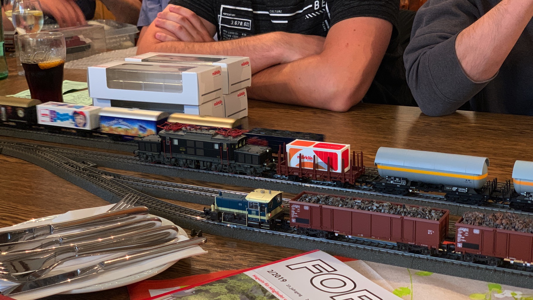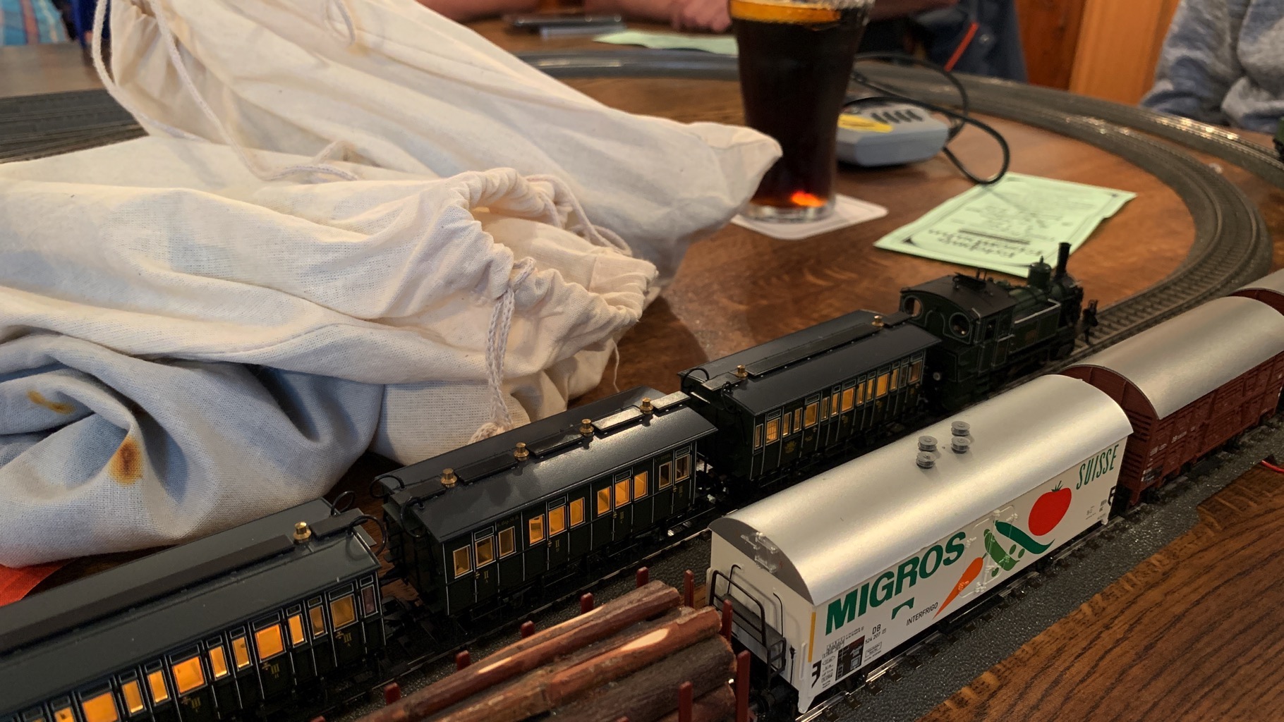 Wir hatten einen schönen, lustigen Abend verbracht mit ganz vielen neuen Loks auf unserer Tischanlage.