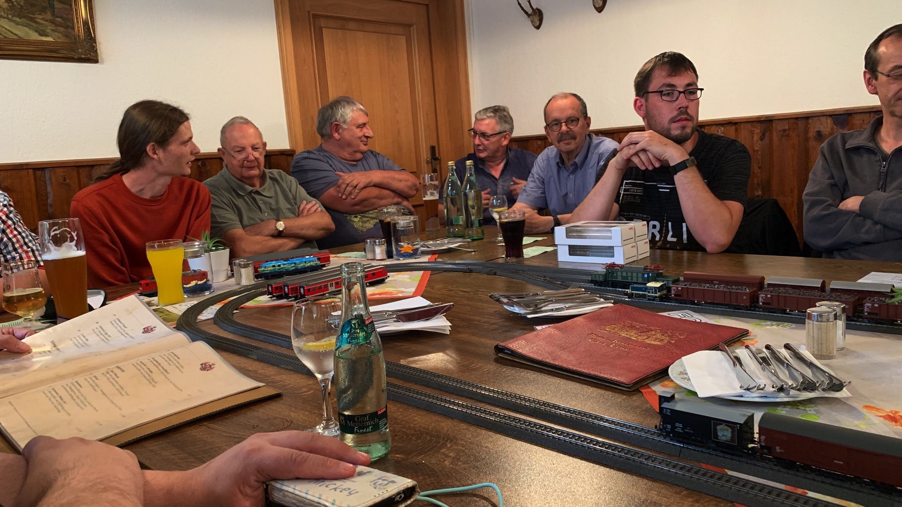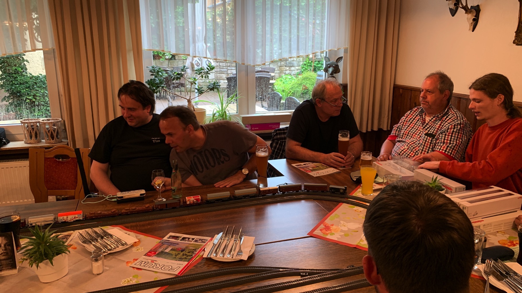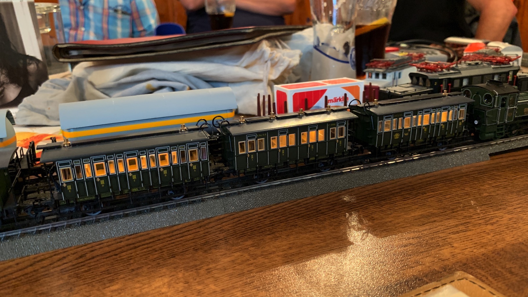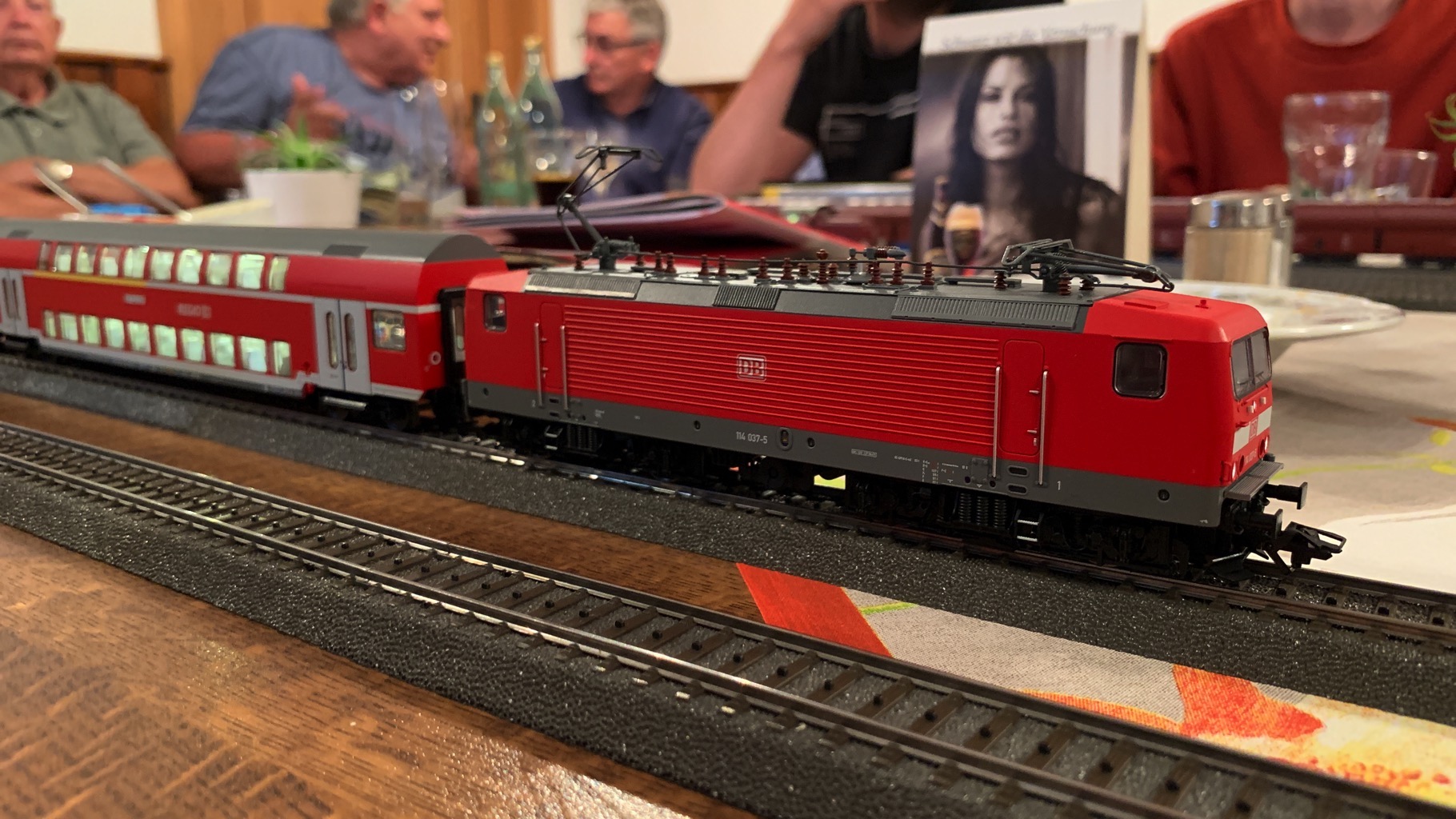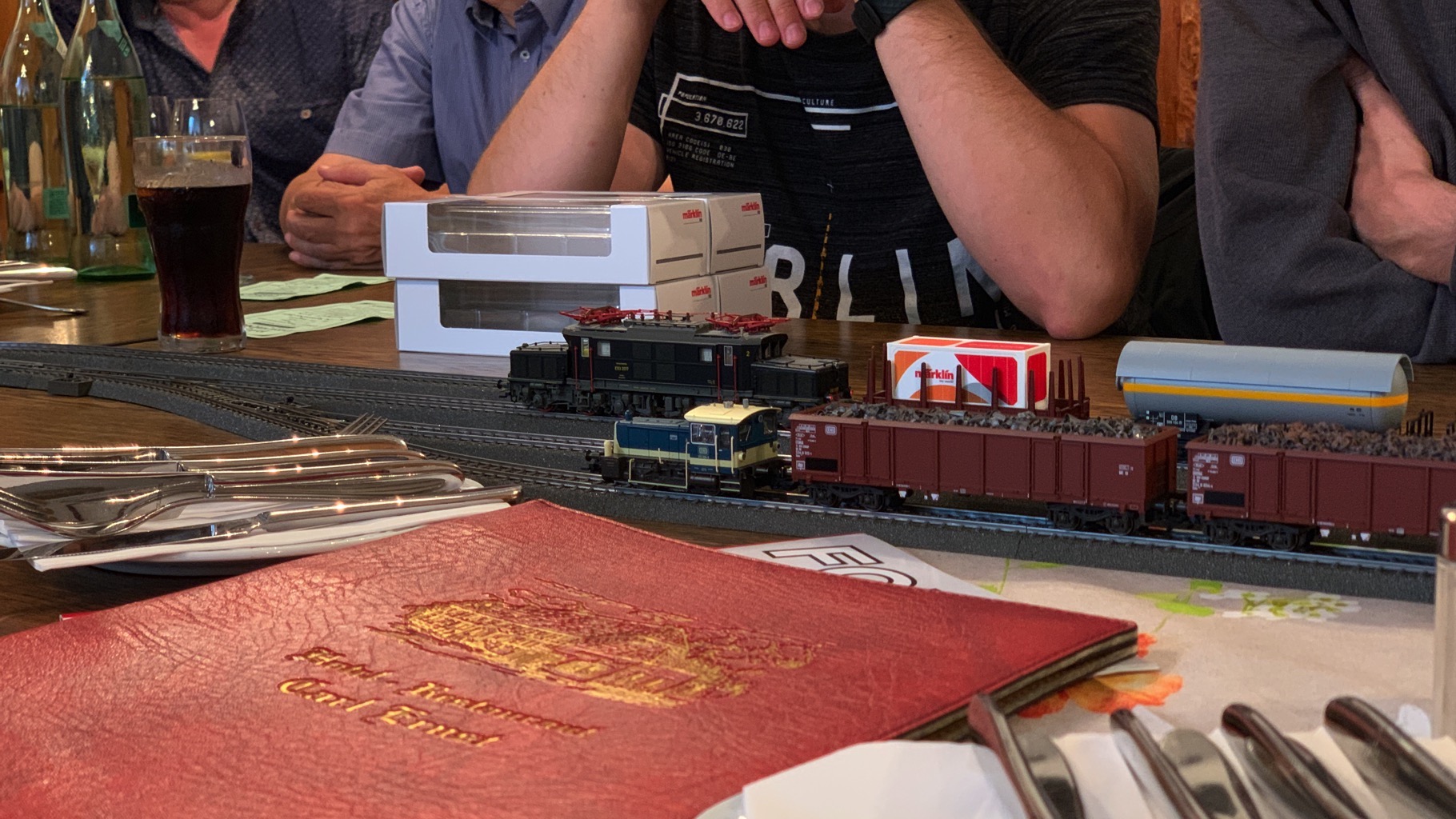 Wir hatten einen schönen, lustigen Abend verbracht mit ganz vielen neuen Loks auf unserer Tischanlage.