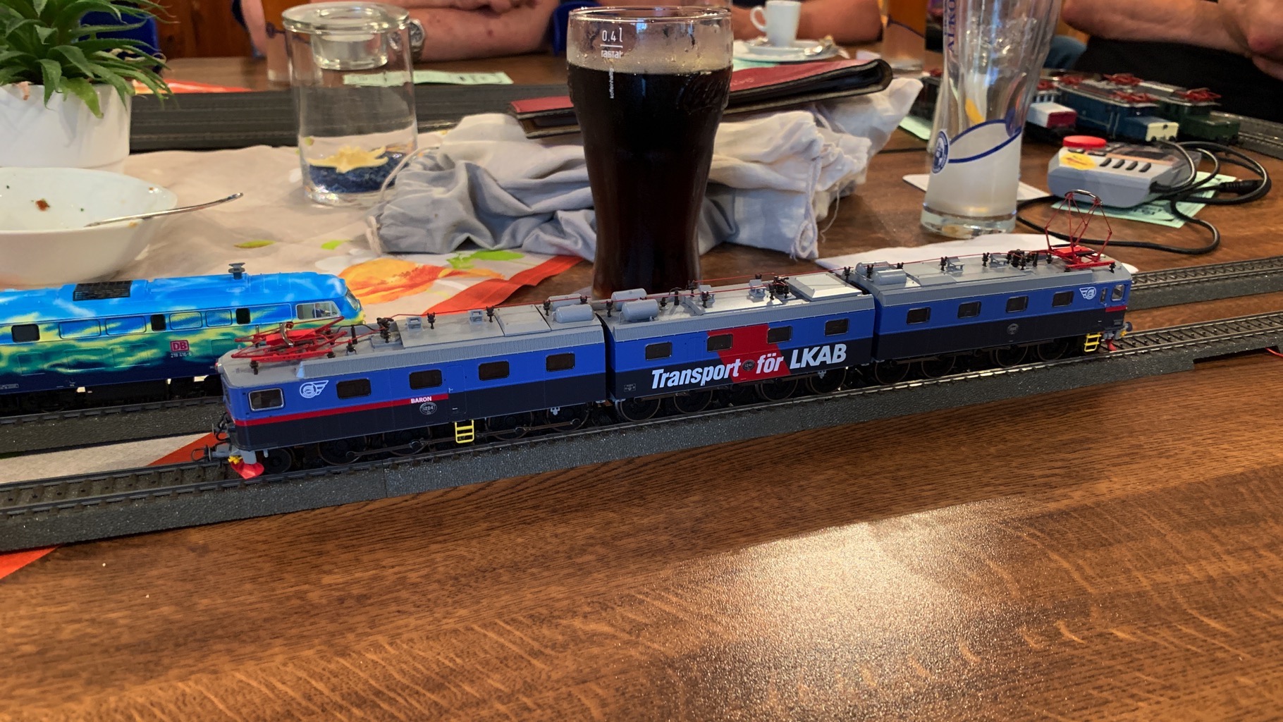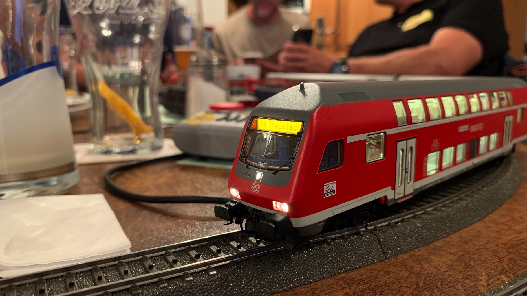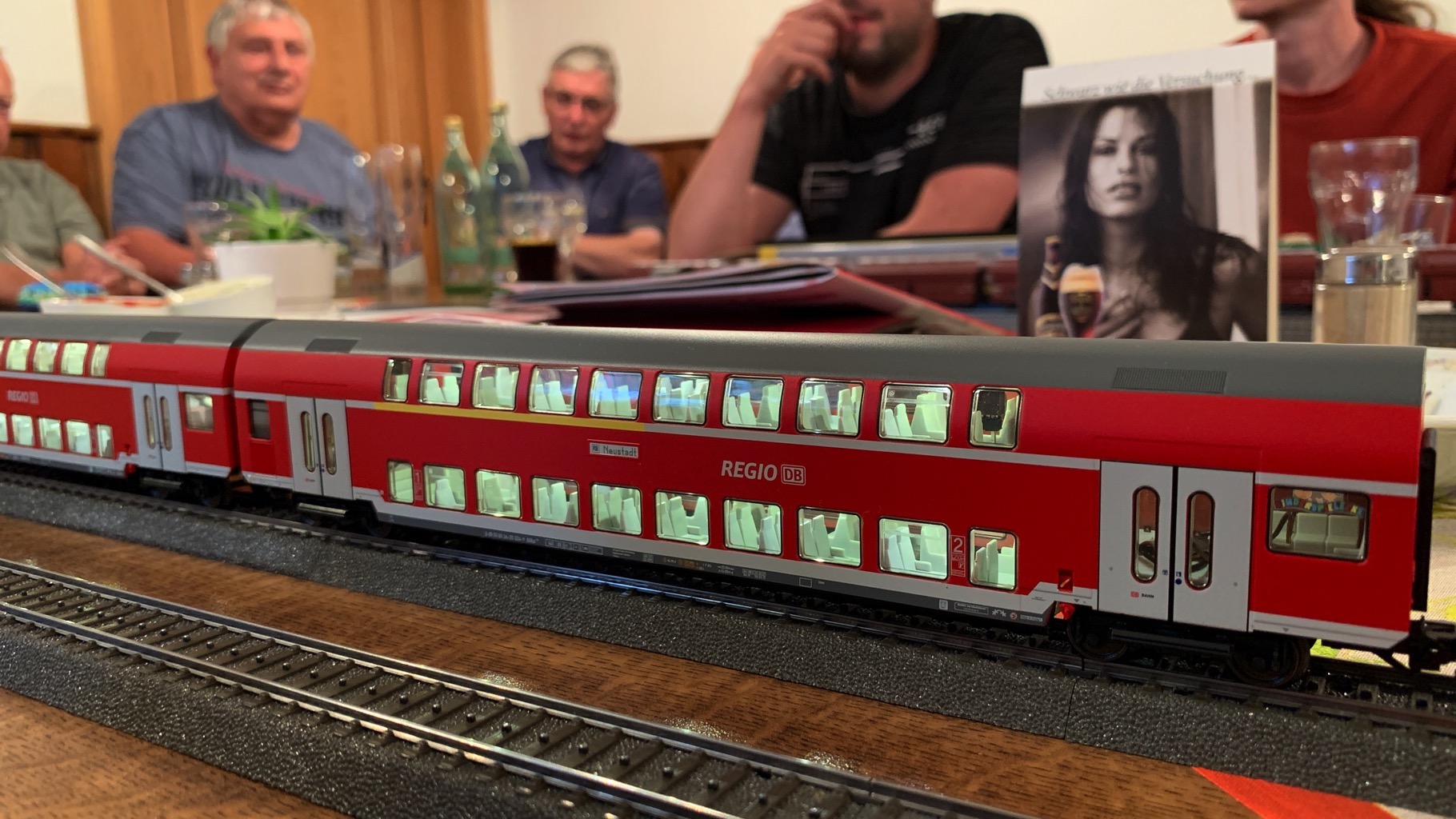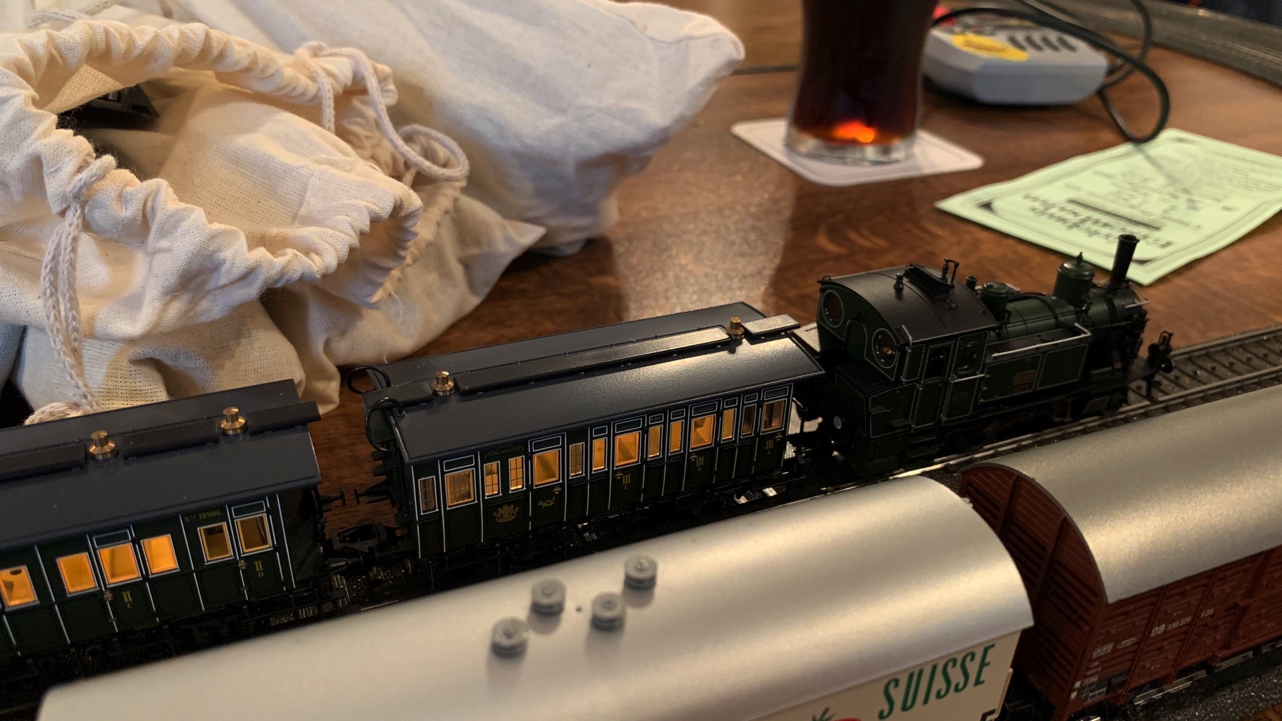 Wir hatten einen schönen, lustigen Abend verbracht mit ganz vielen neuen Loks auf unserer Tischanlage.