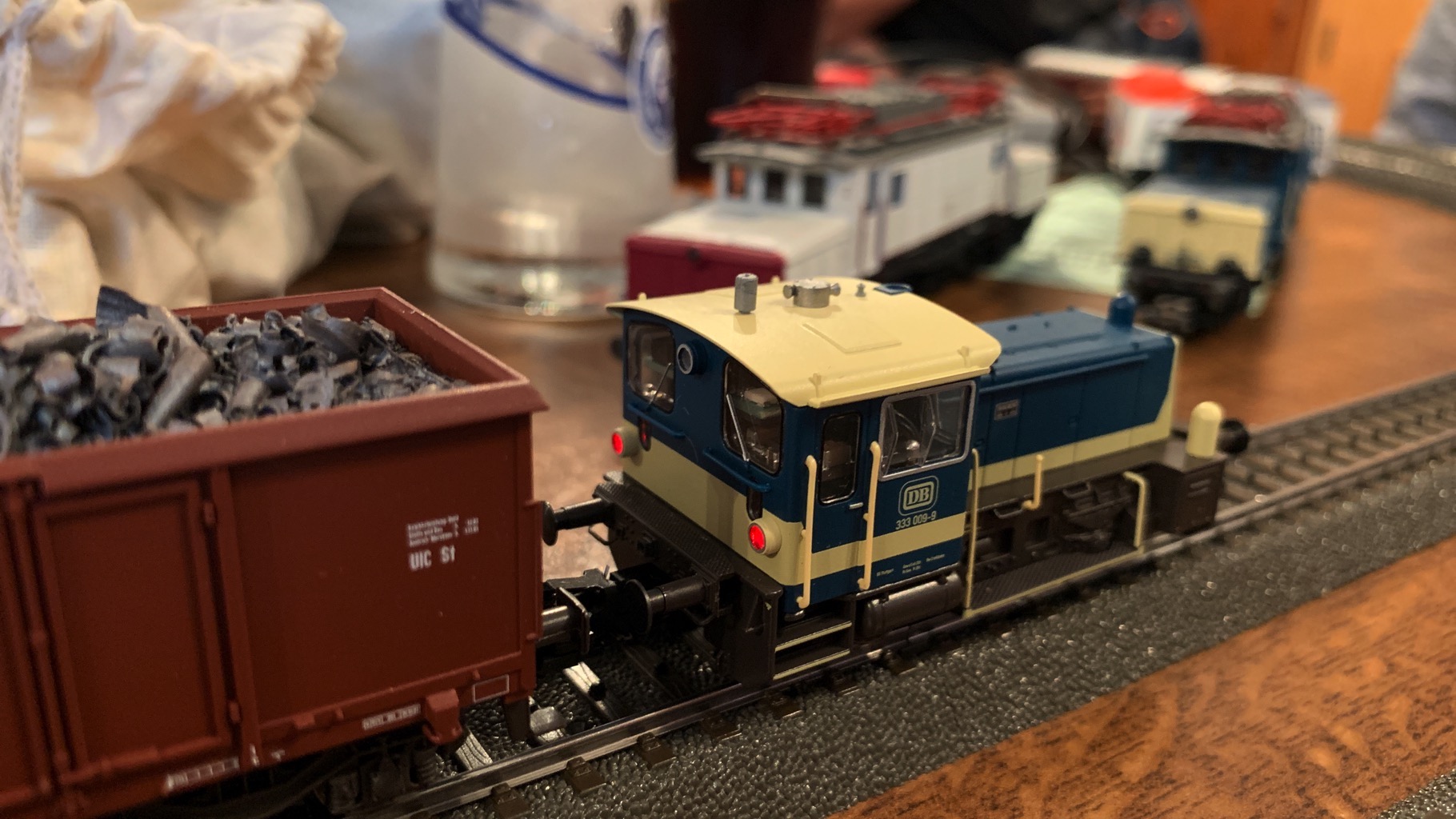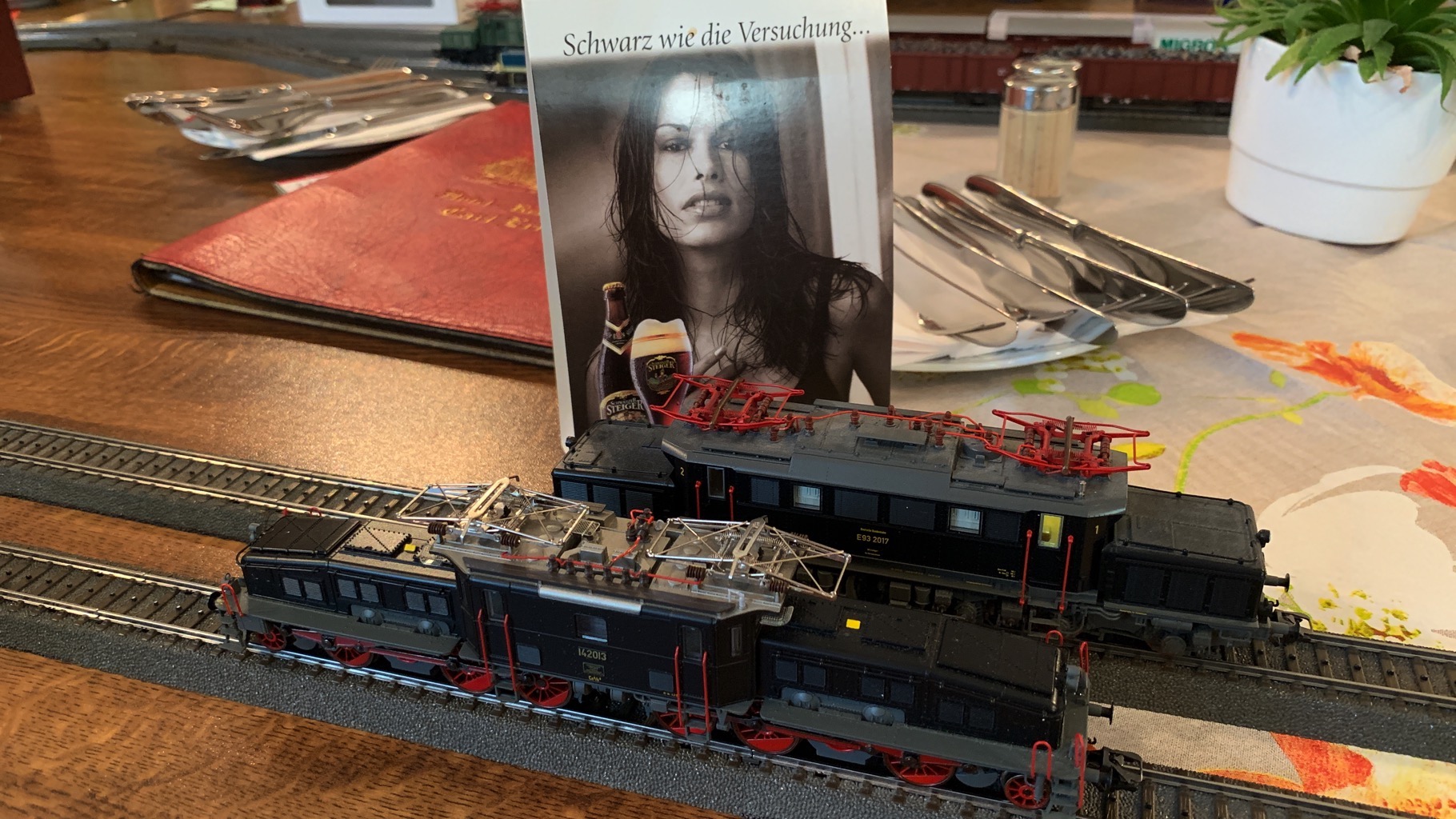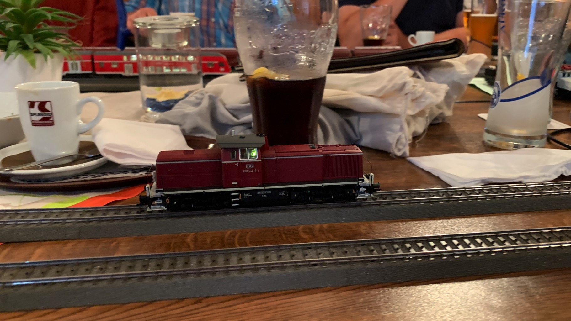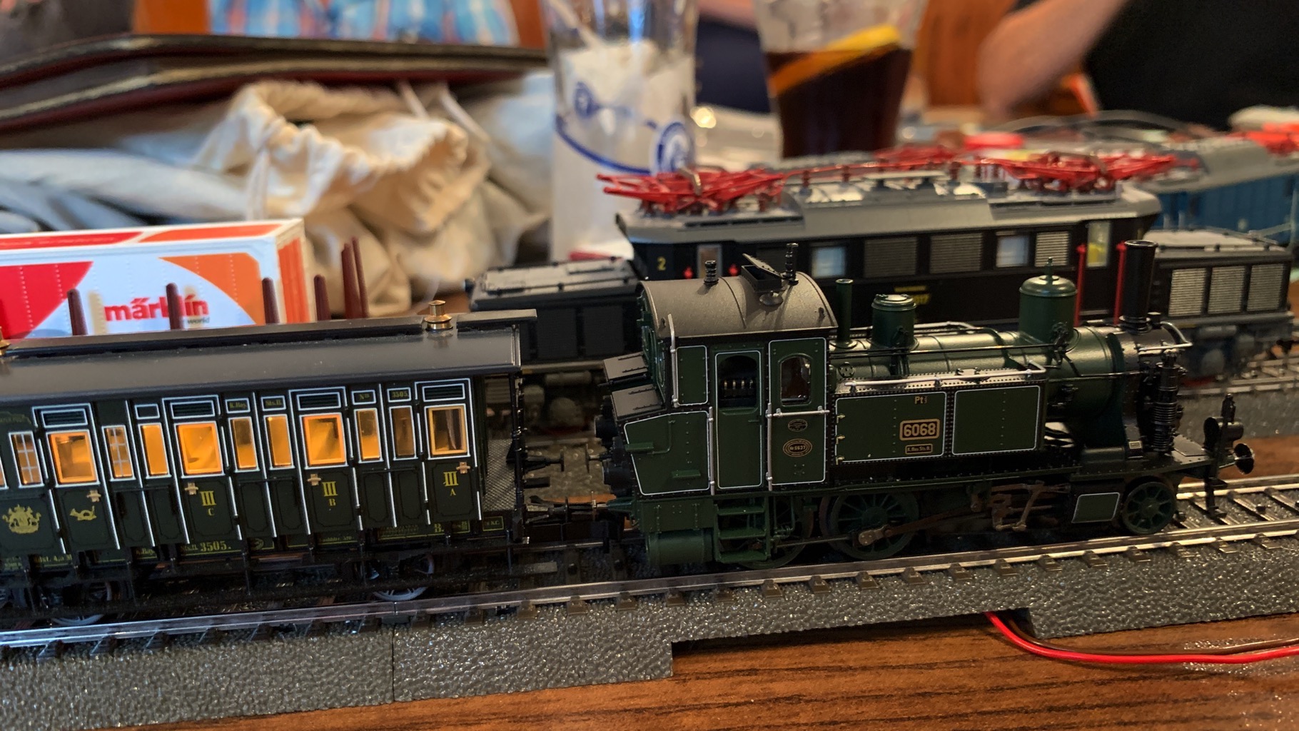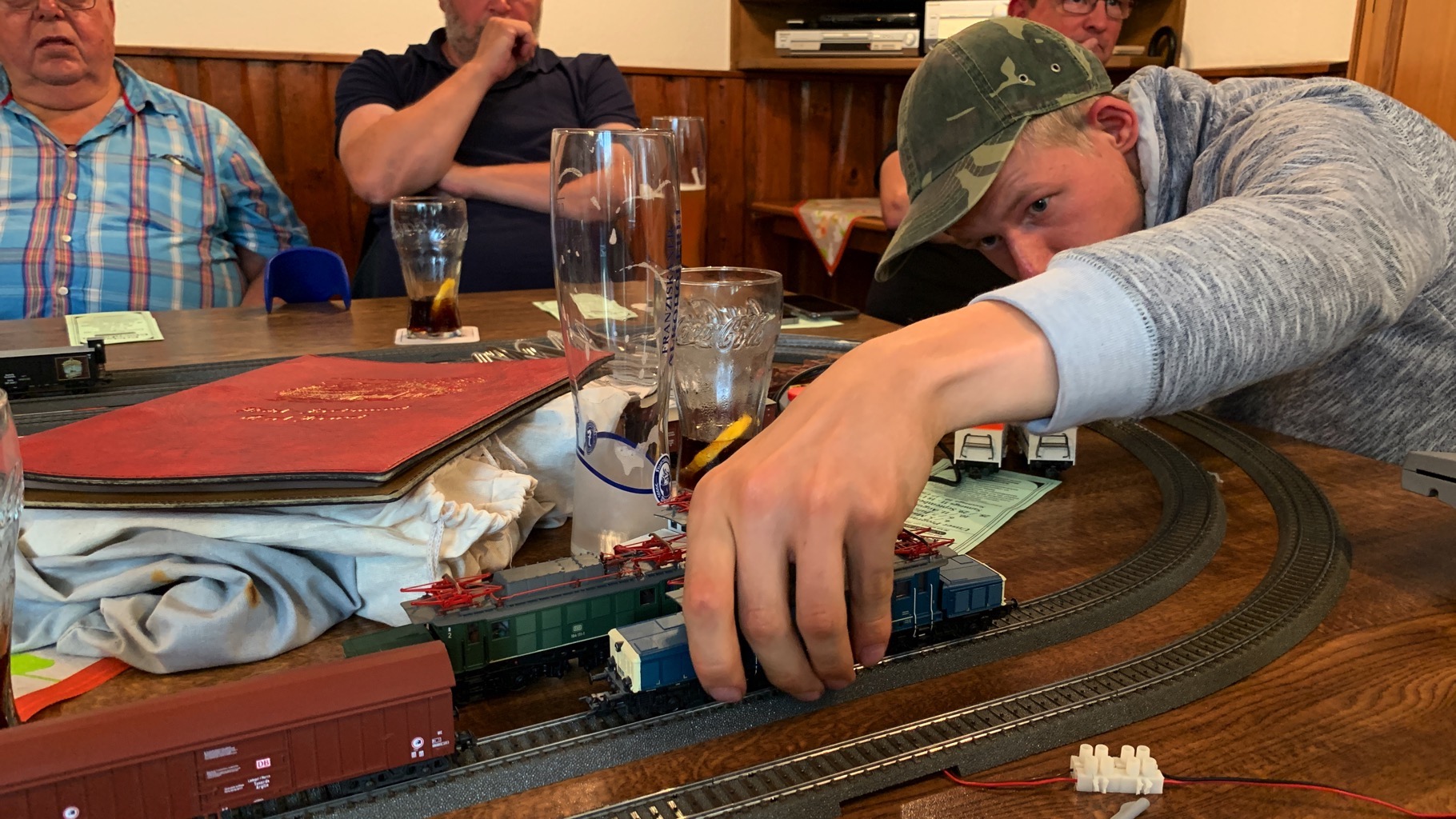 Wir hatten einen schönen, lustigen Abend verbracht mit ganz vielen neuen Loks auf unserer Tischanlage.