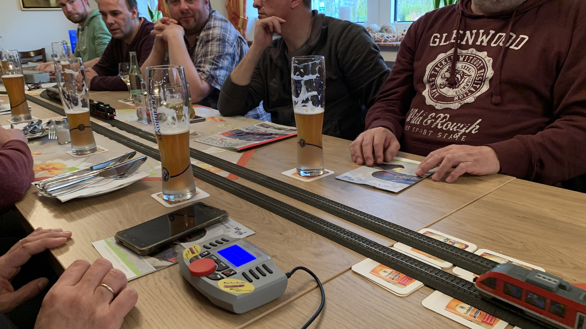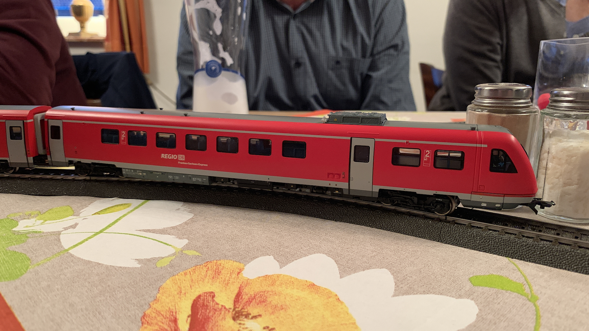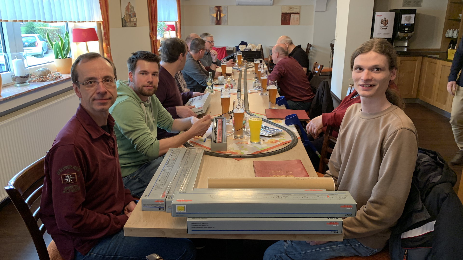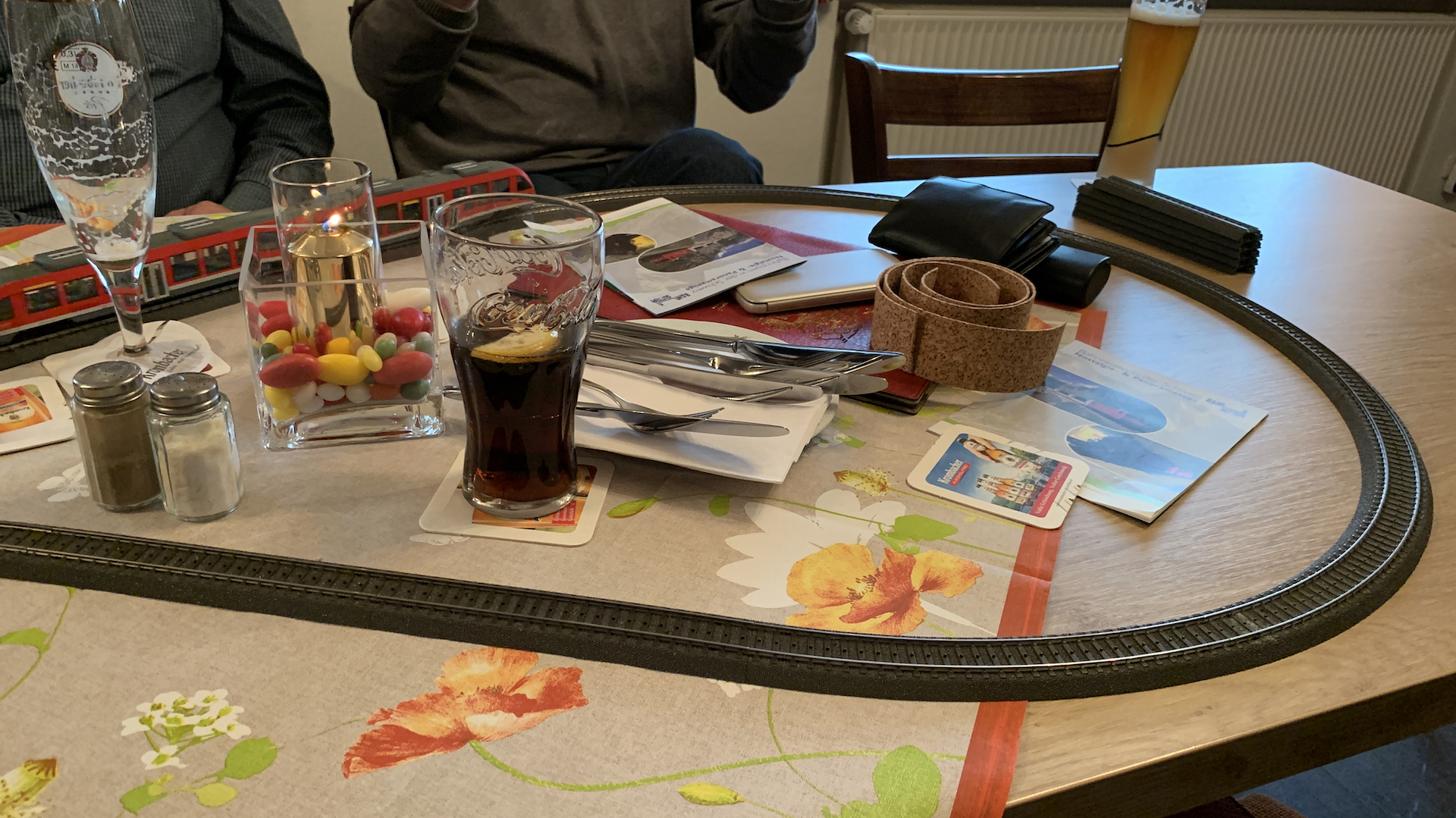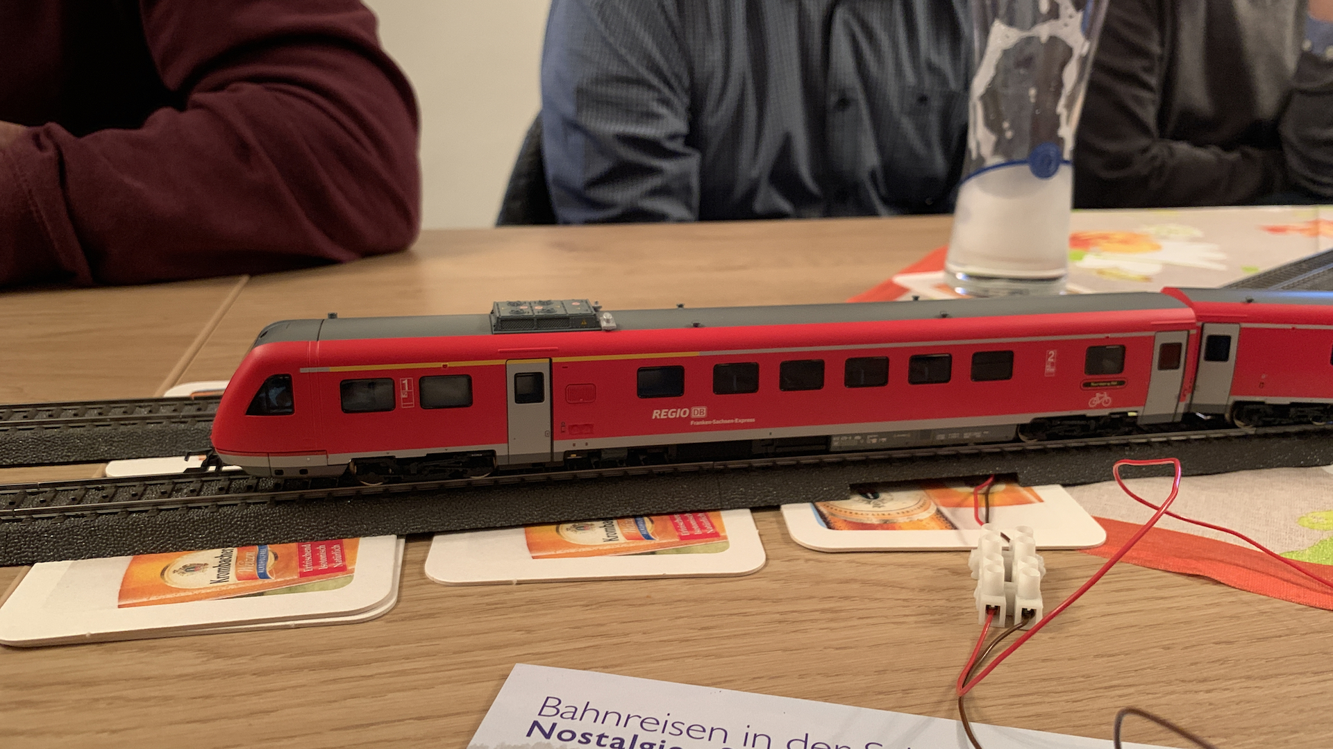 Im Frühstücksraum des Gasthauses sind leider die Tische nicht so breit, so dass wir nur eine eingleisige Strecke aufbauen konnten.