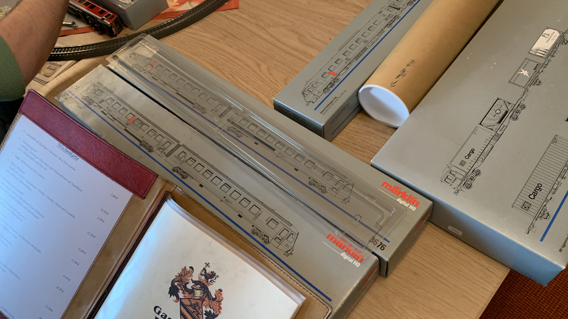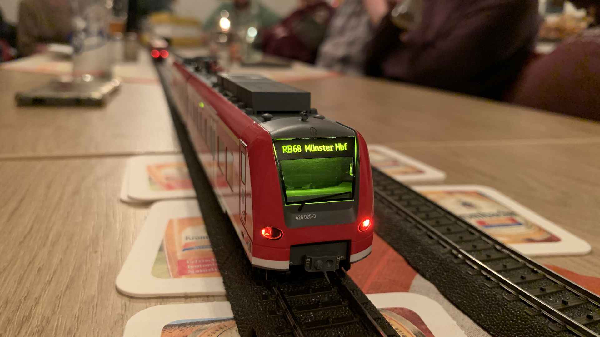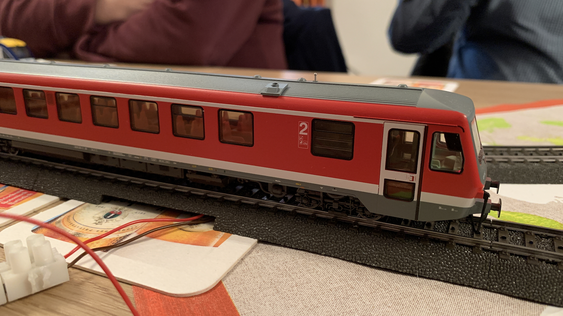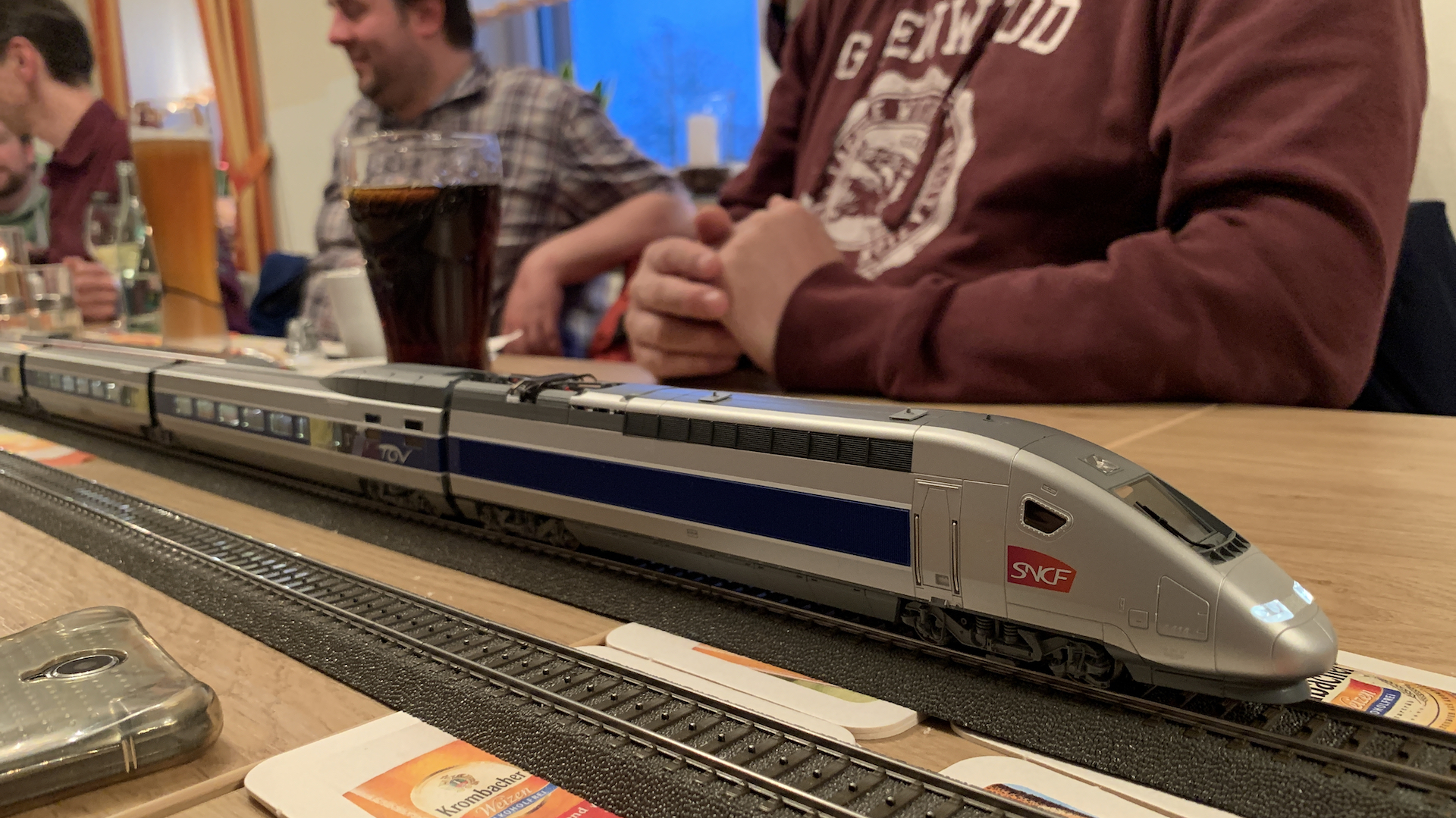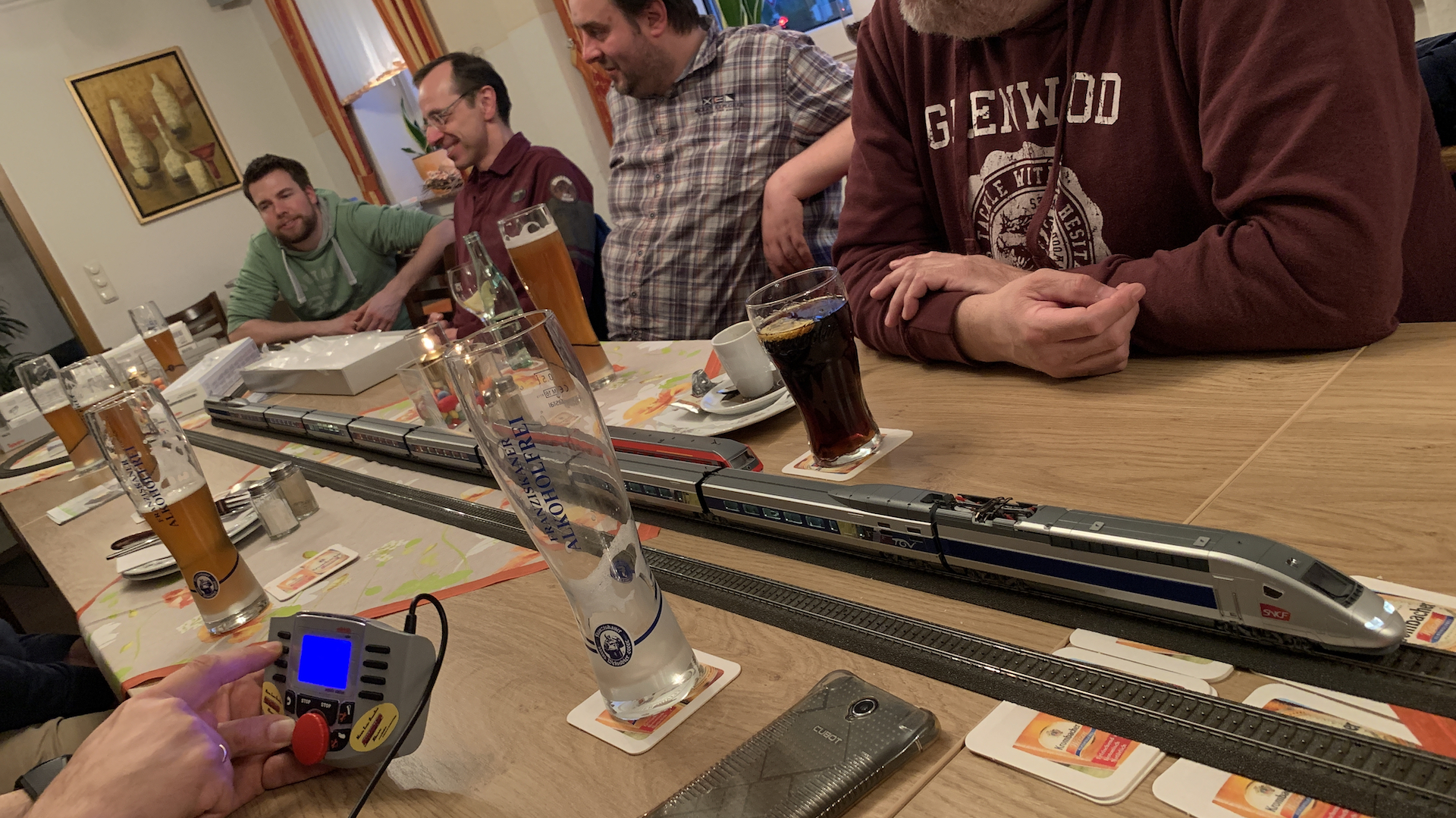 Im Frühstücksraum des Gasthauses sind leider die Tische nicht so breit, so dass wir nur eine eingleisige Strecke aufbauen konnten.