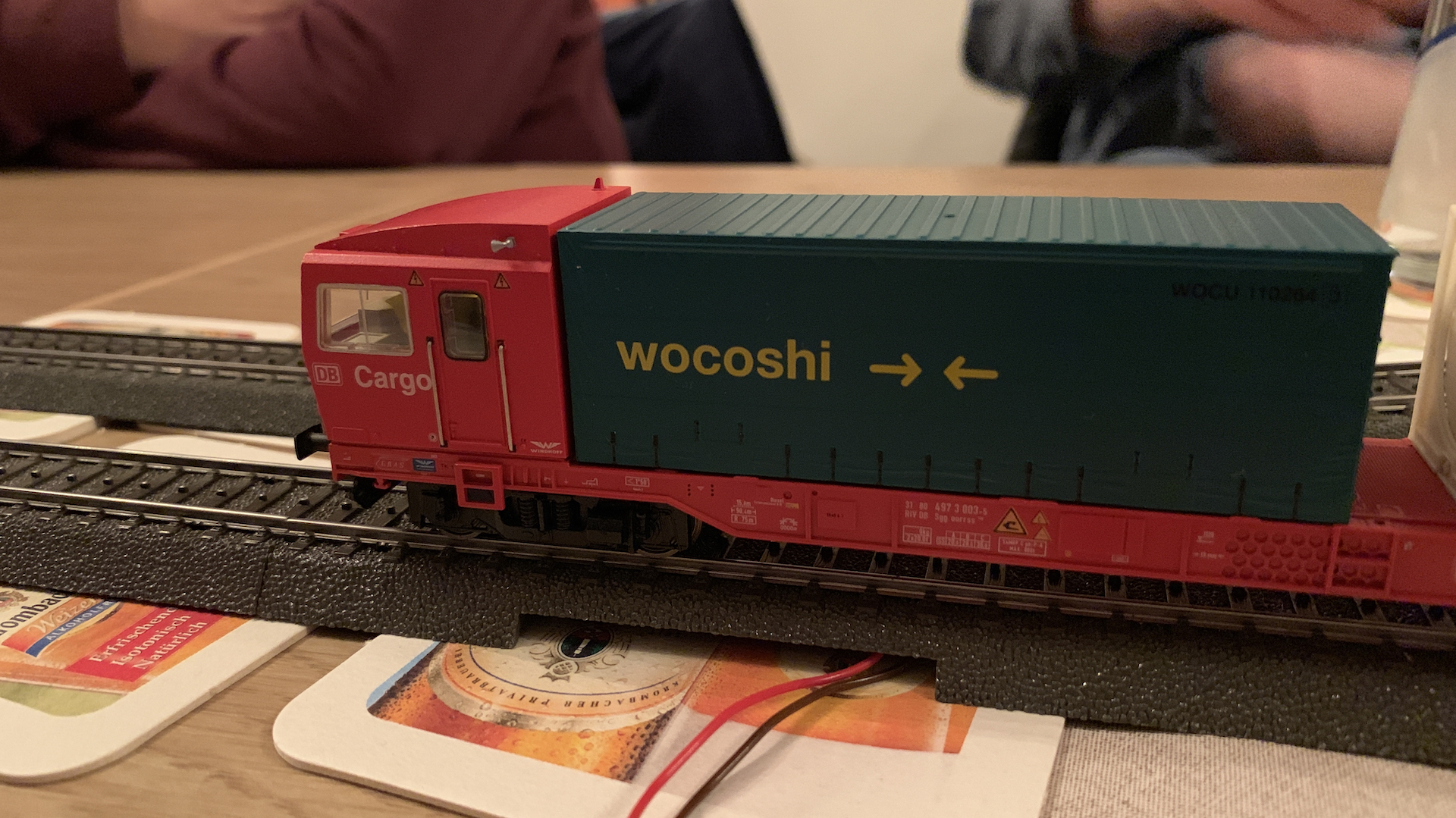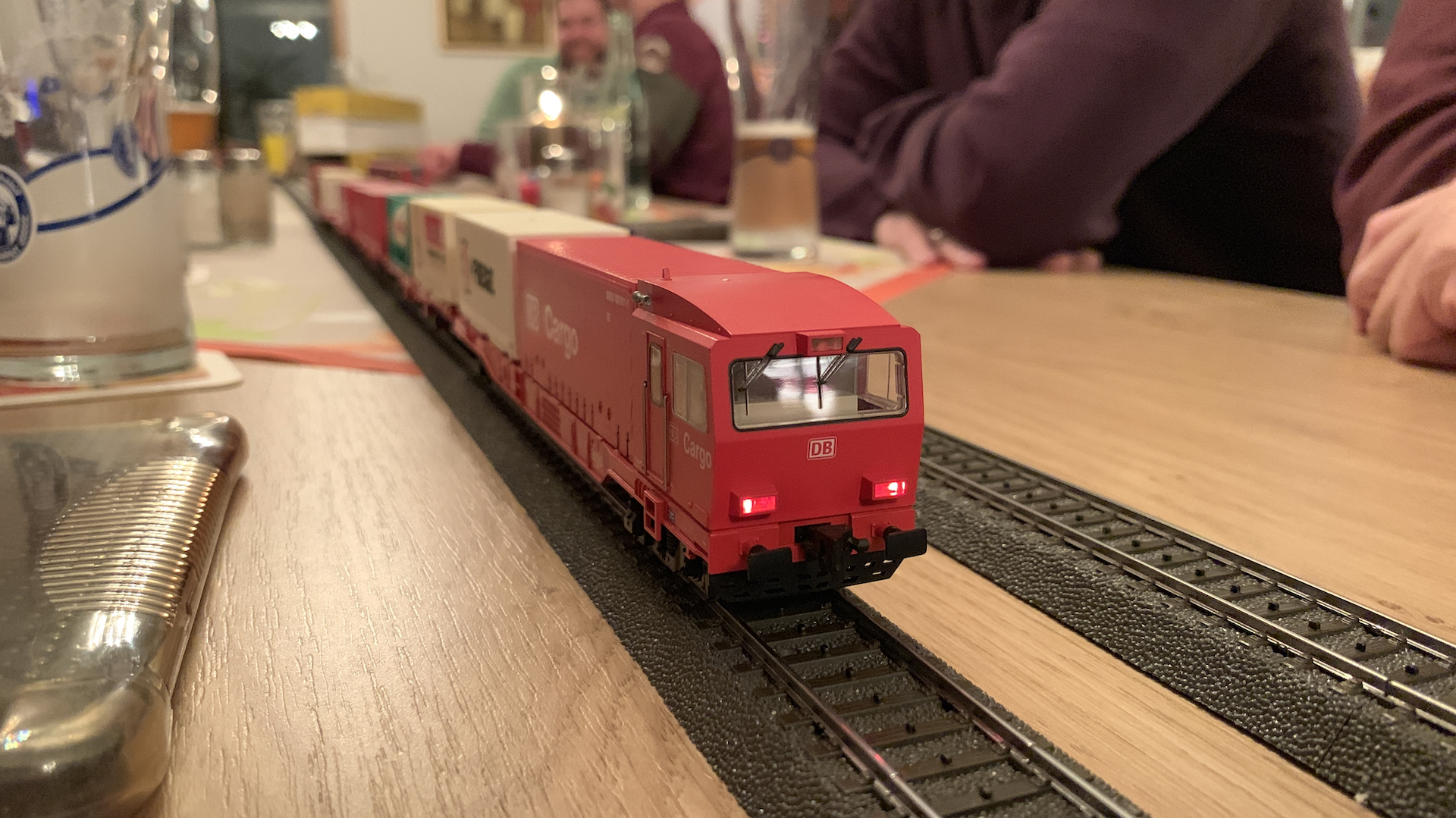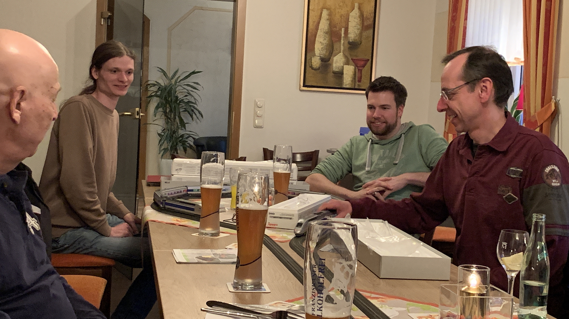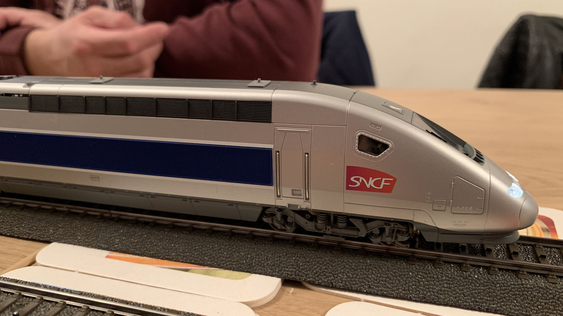Im Frühstücksraum des Gasthauses sind leider die Tische nicht so breit, so dass wir nur eine eingleisige Strecke aufbauen konnten.