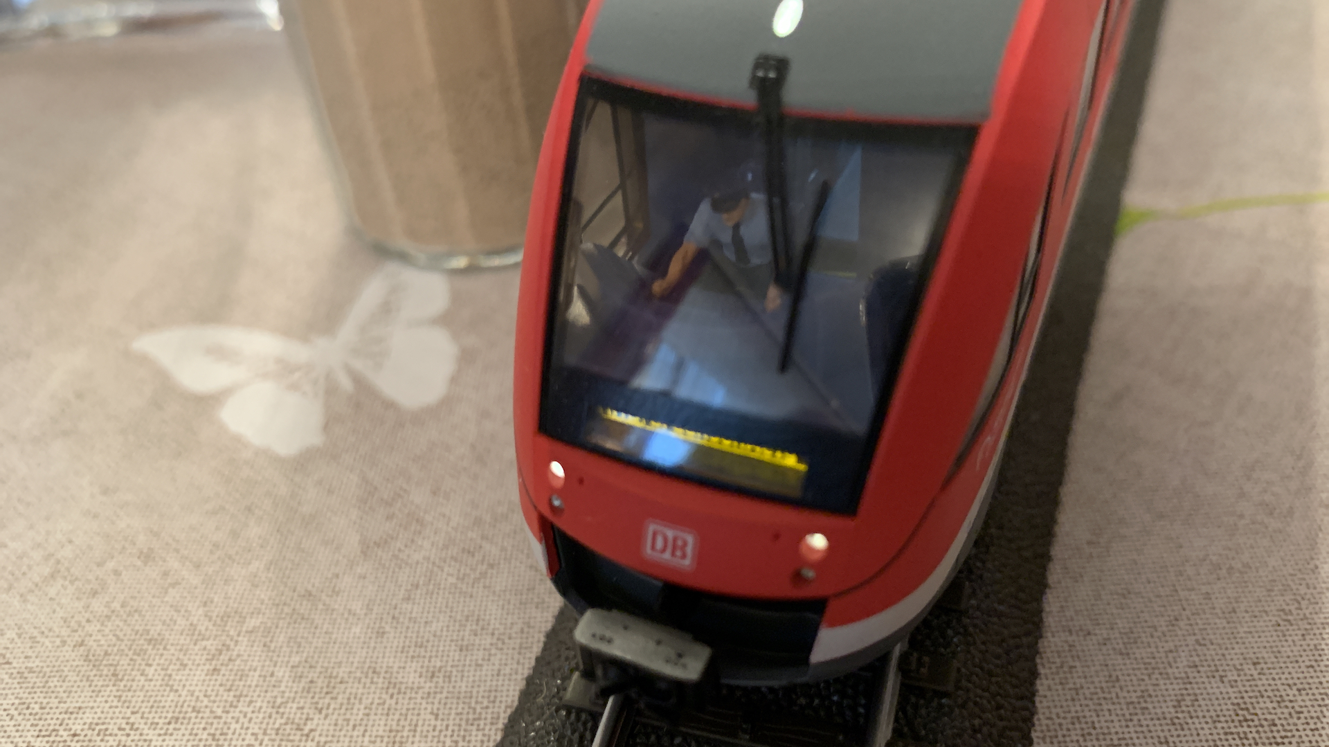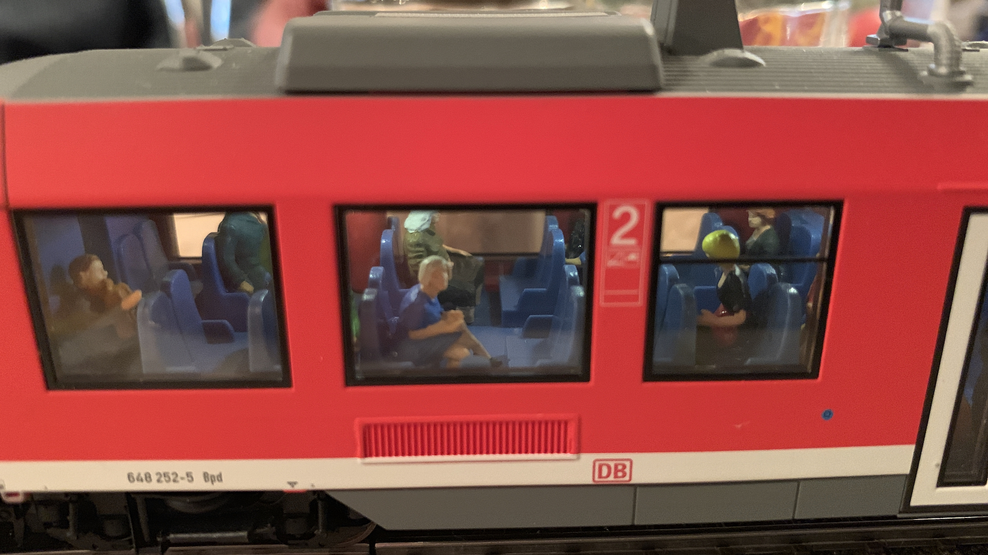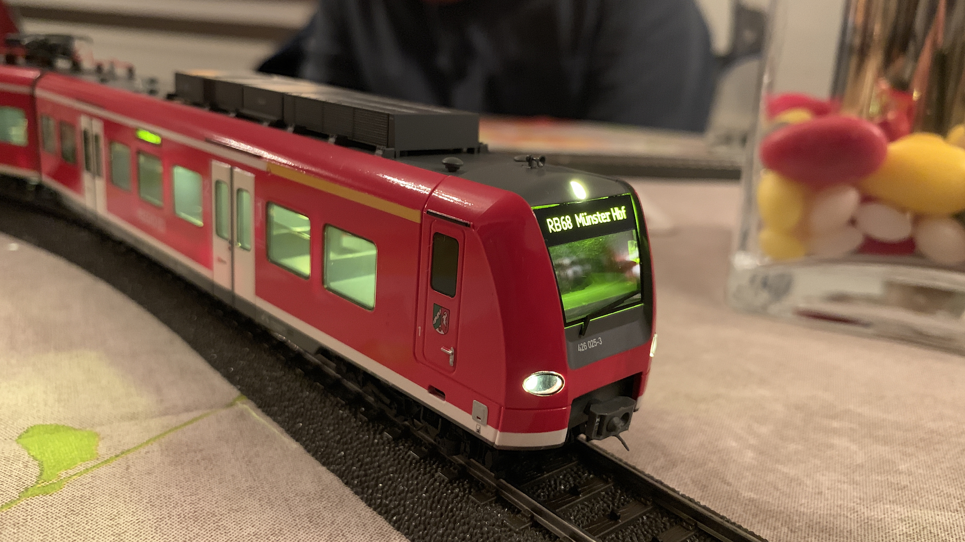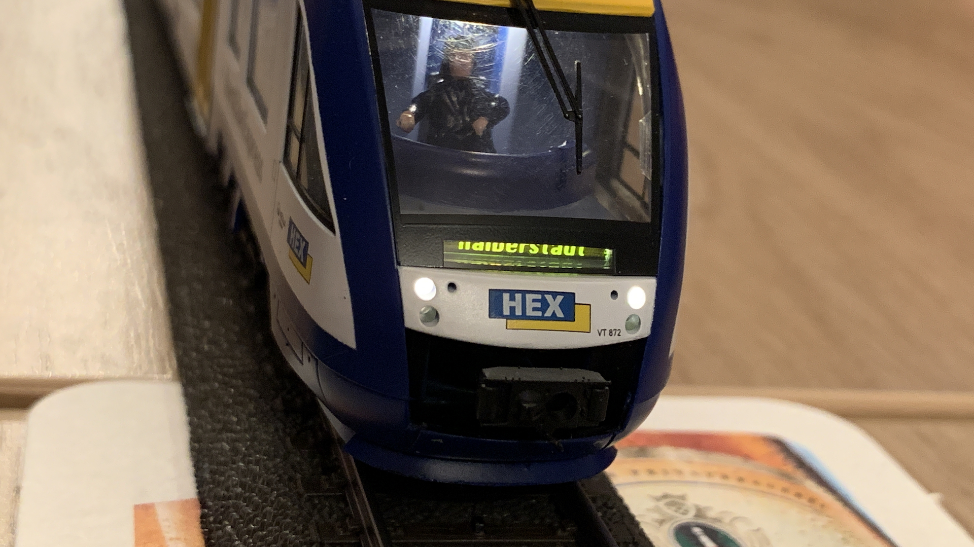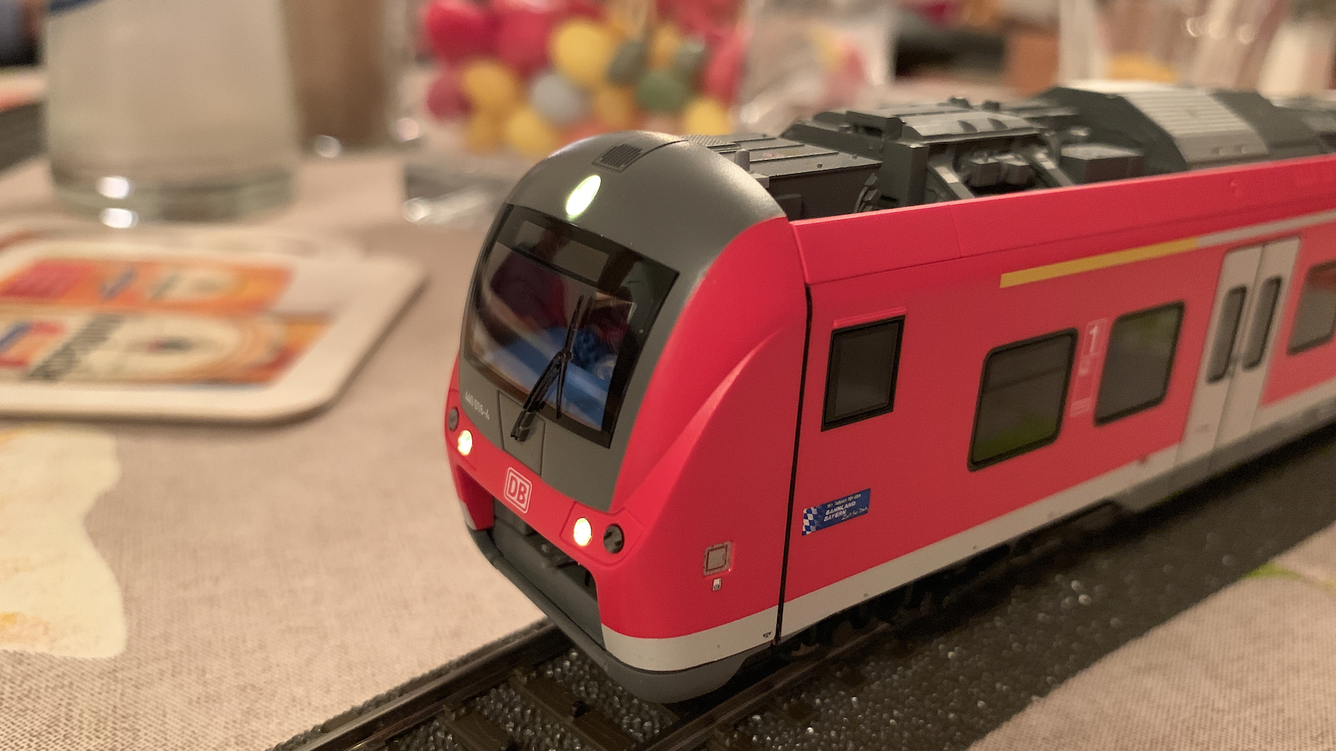 Im Frühstücksraum des Gasthauses sind leider die Tische nicht so breit, so dass wir nur eine eingleisige Strecke aufbauen konnten.