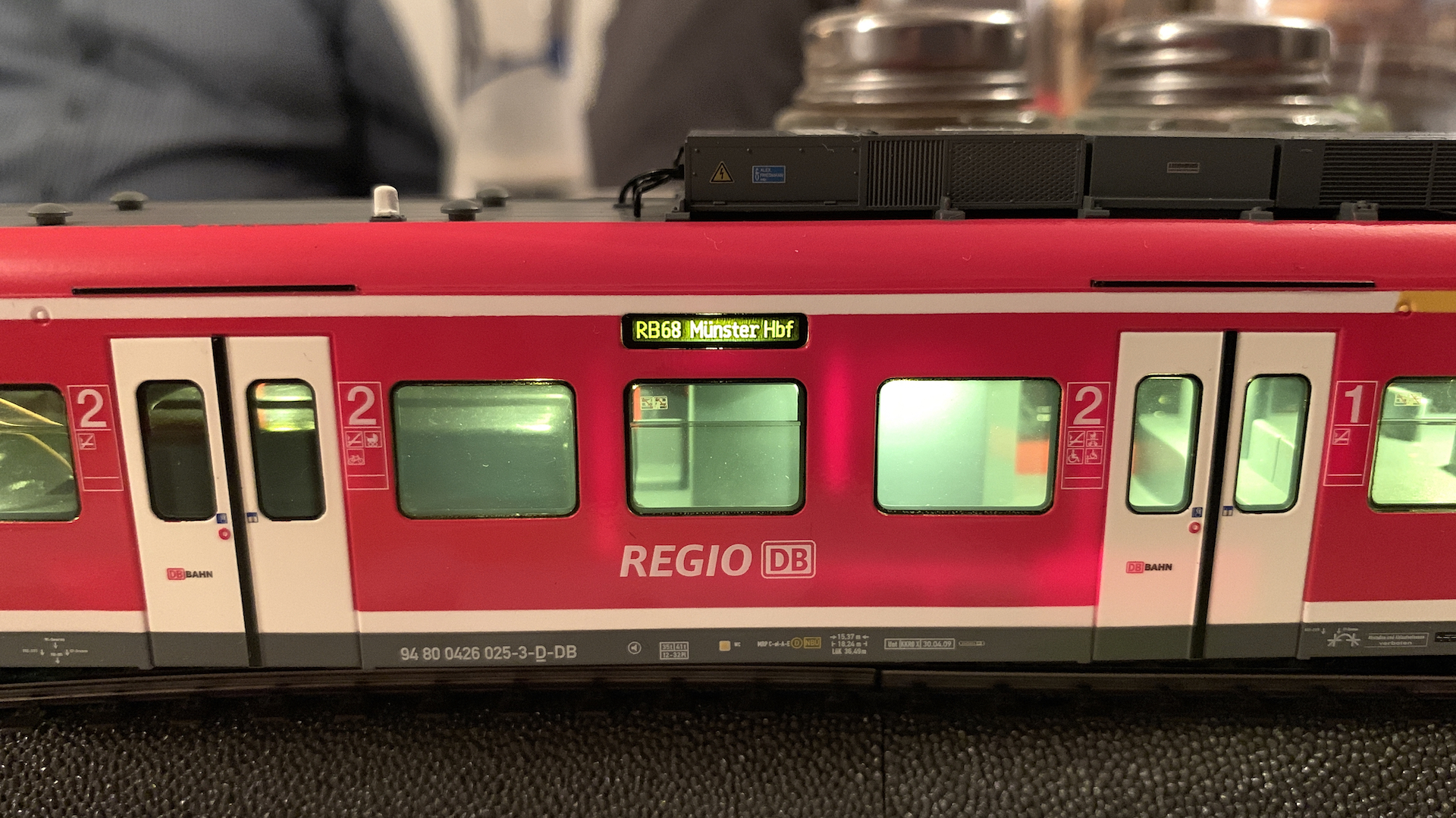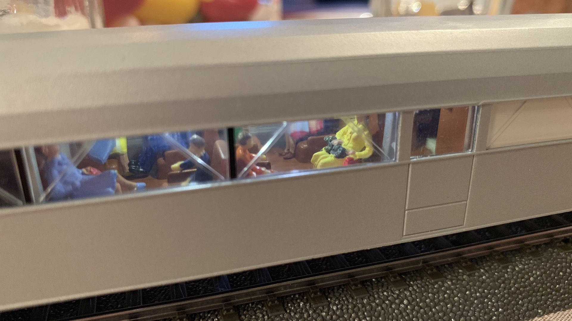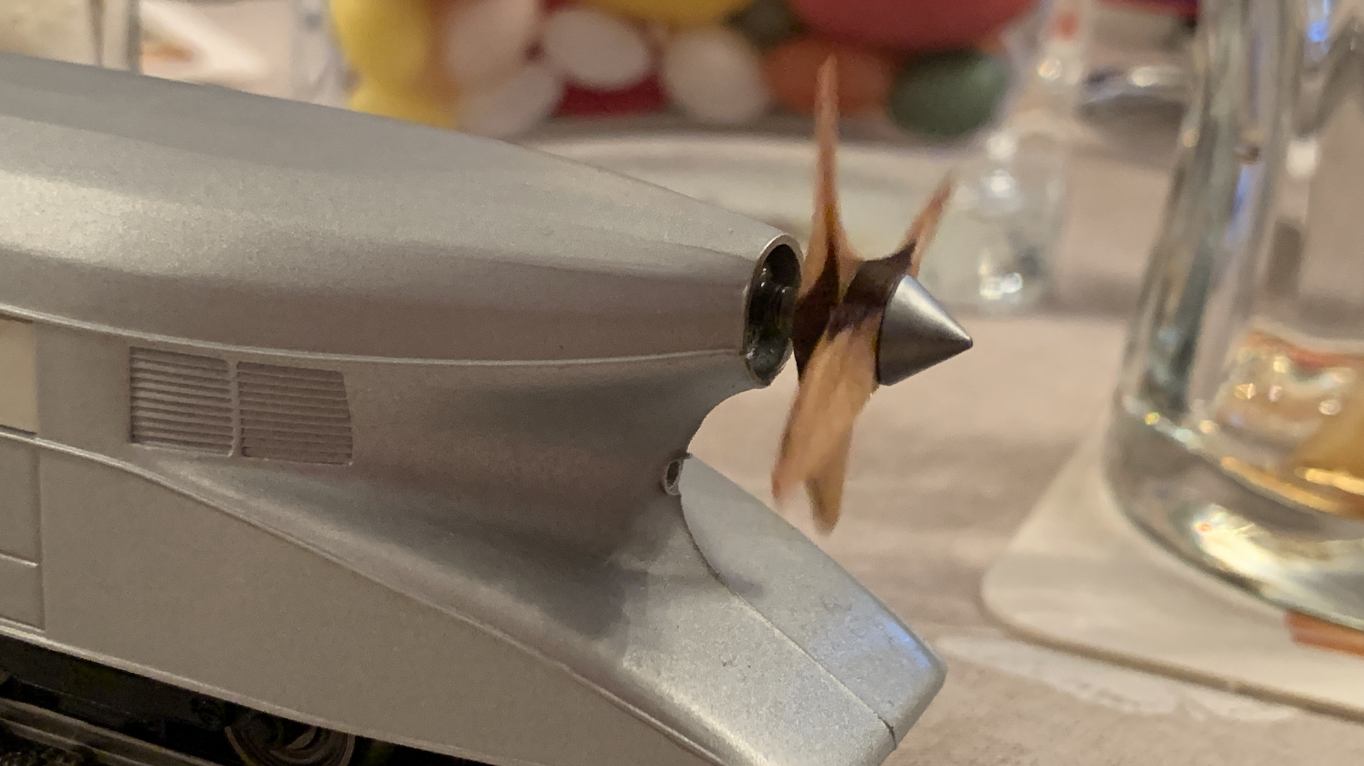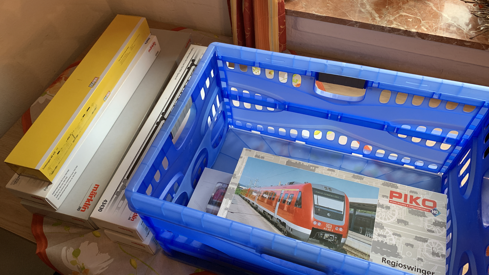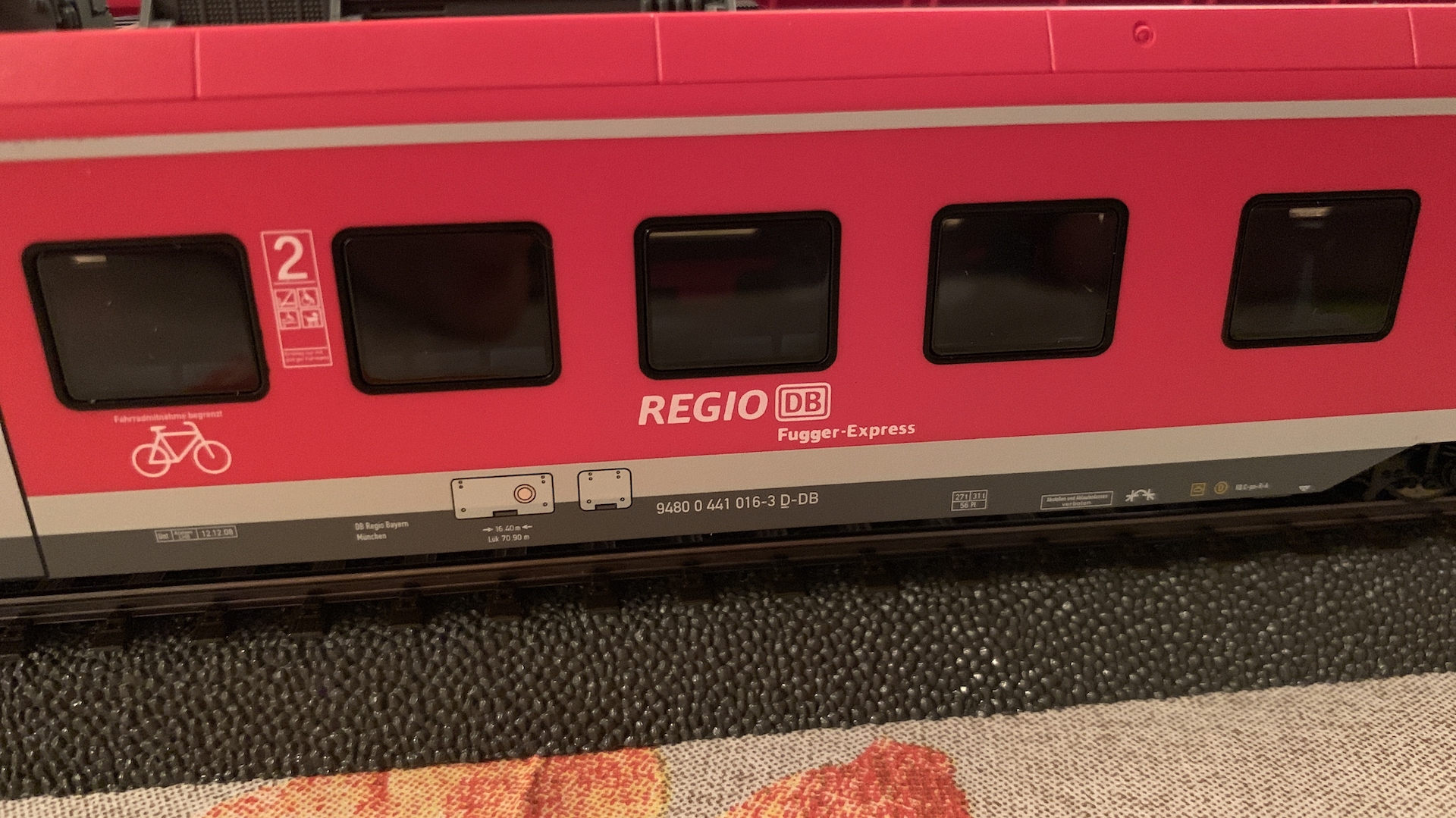 Im Frühstücksraum des Gasthauses sind leider die Tische nicht so breit, so dass wir nur eine eingleisige Strecke aufbauen konnten.