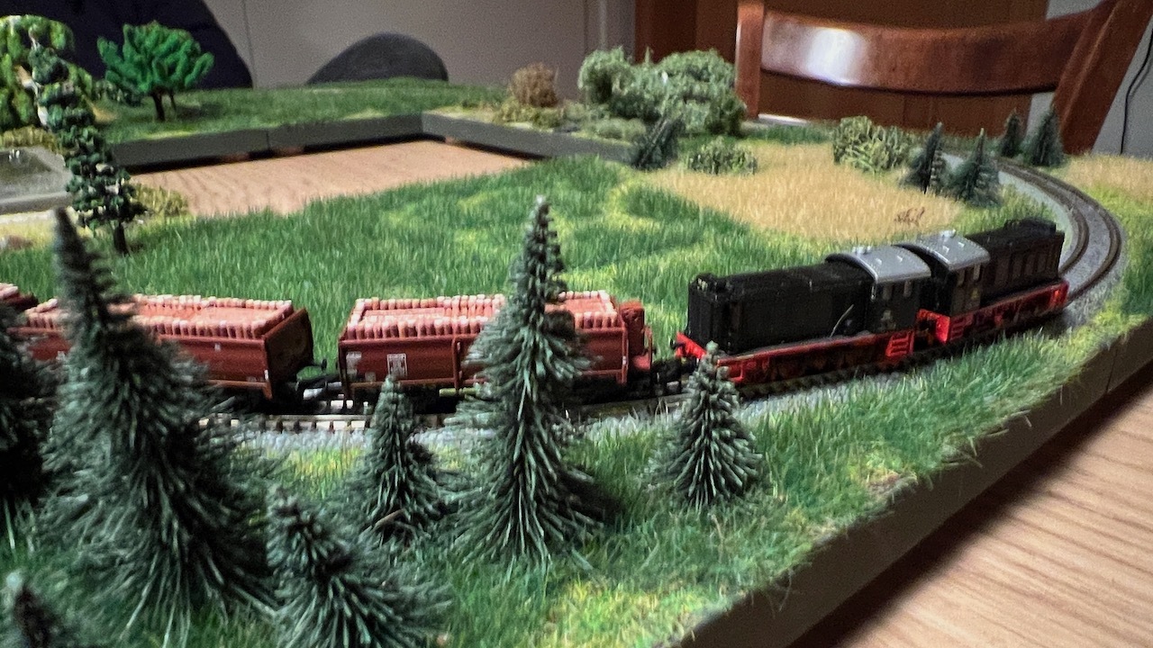 Dieser neue Mitstreiter hat so ganz nebenbei noch unseren mobile Anlage mit seiner kleine Spur Z Brettern bereichert.