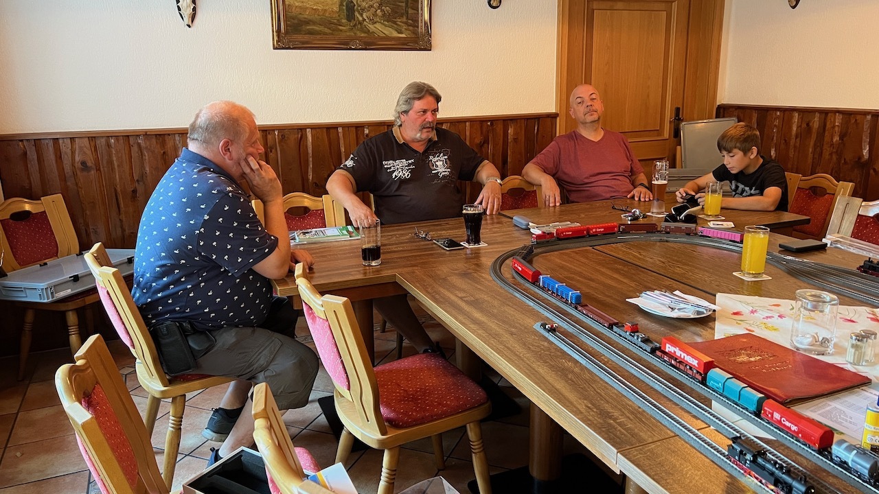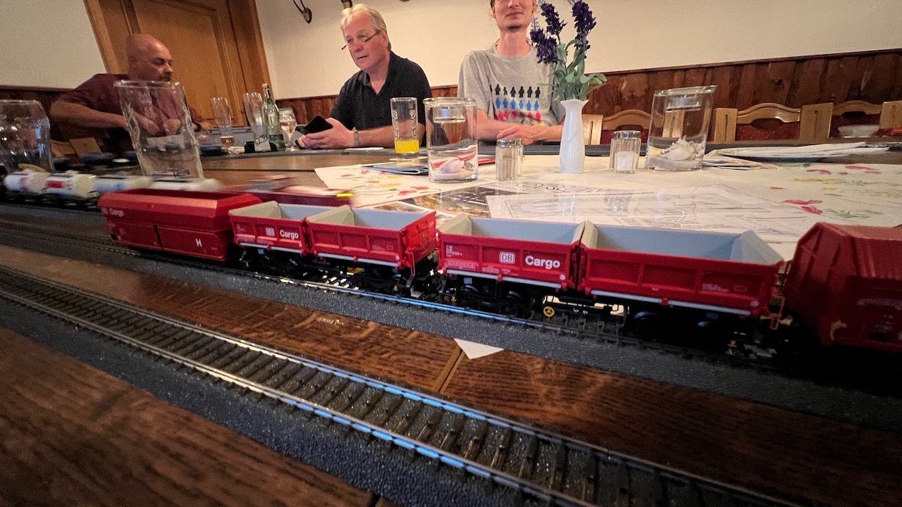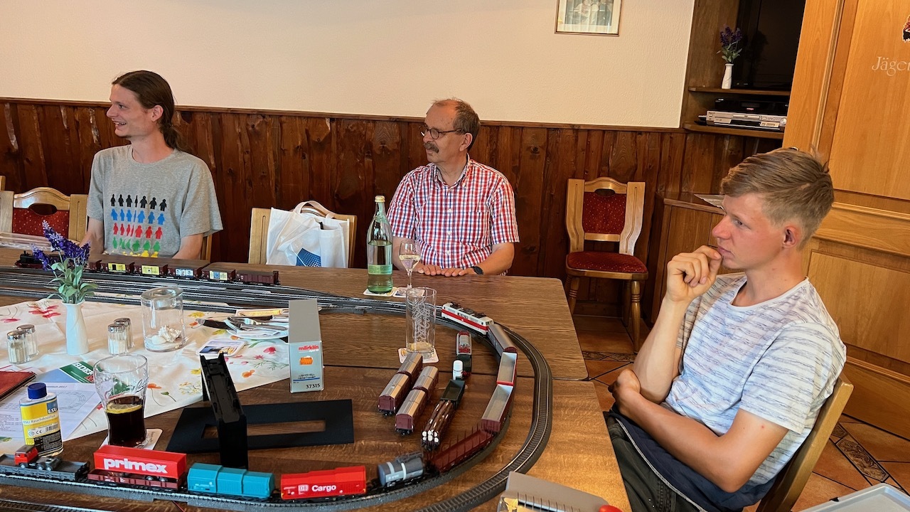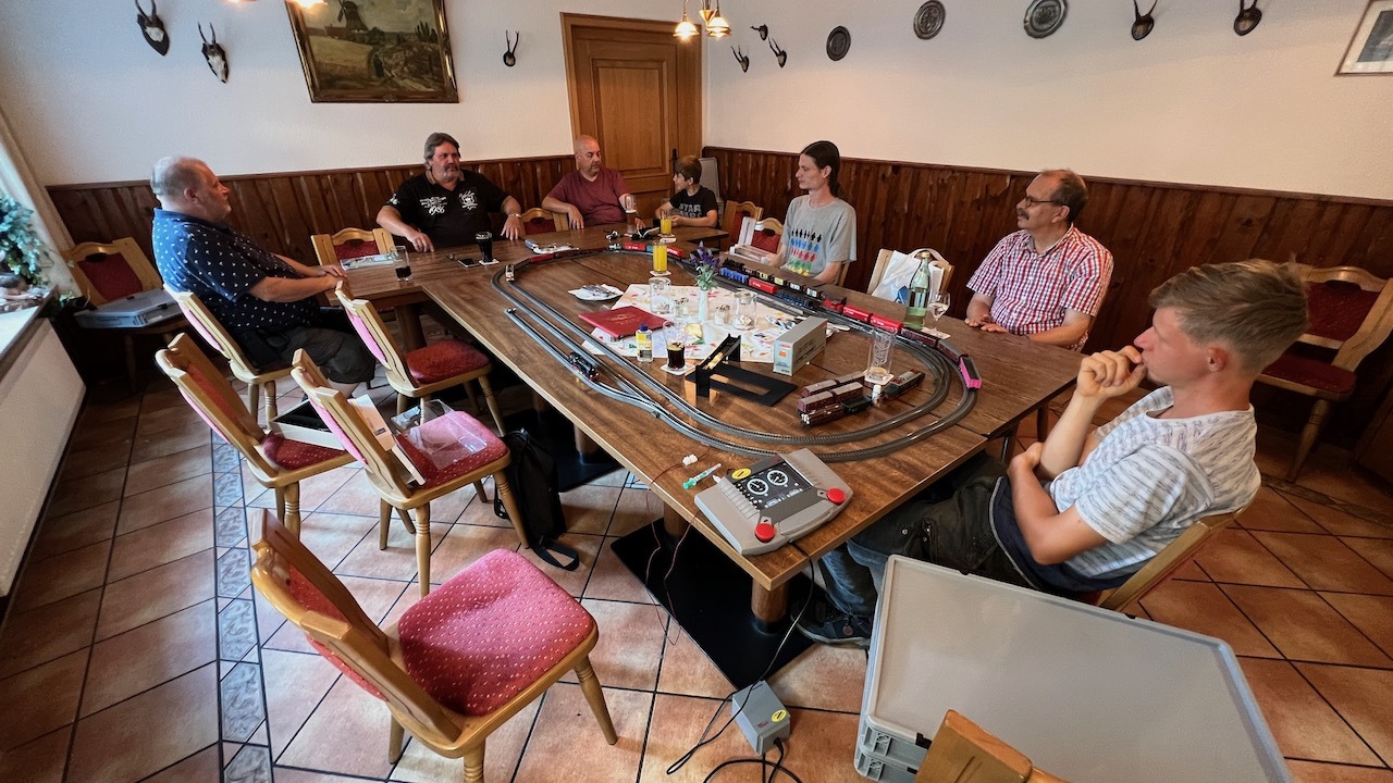 Trotz der 34 Grad Außentemperaturen in unserer Gegend und der Ferien- und Urlaubszeit haben sich 11 Modellbahner zu unserem sommerlichen Stammtisch eingefunden.